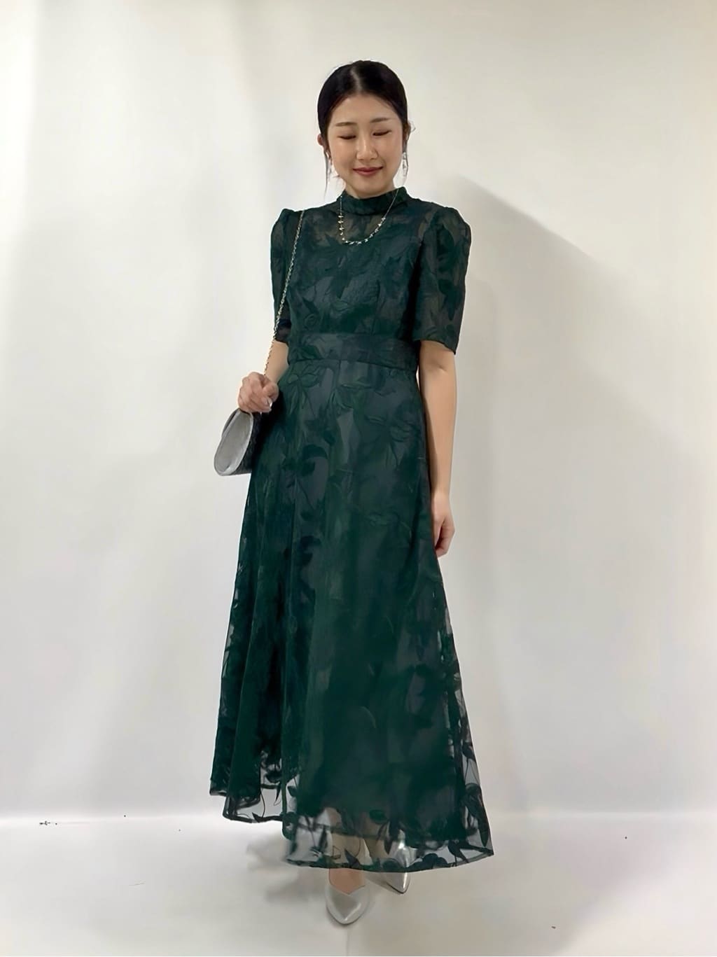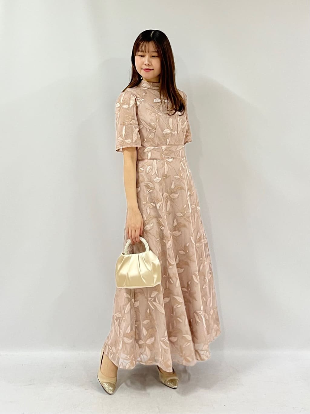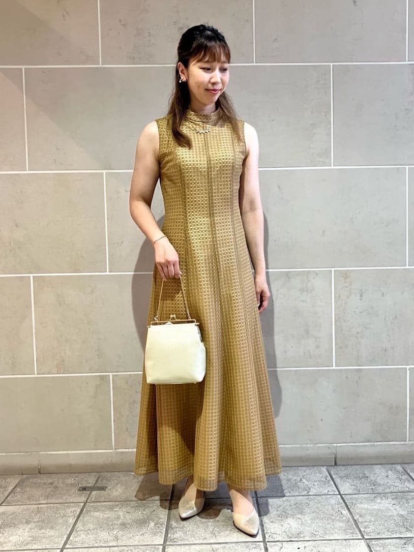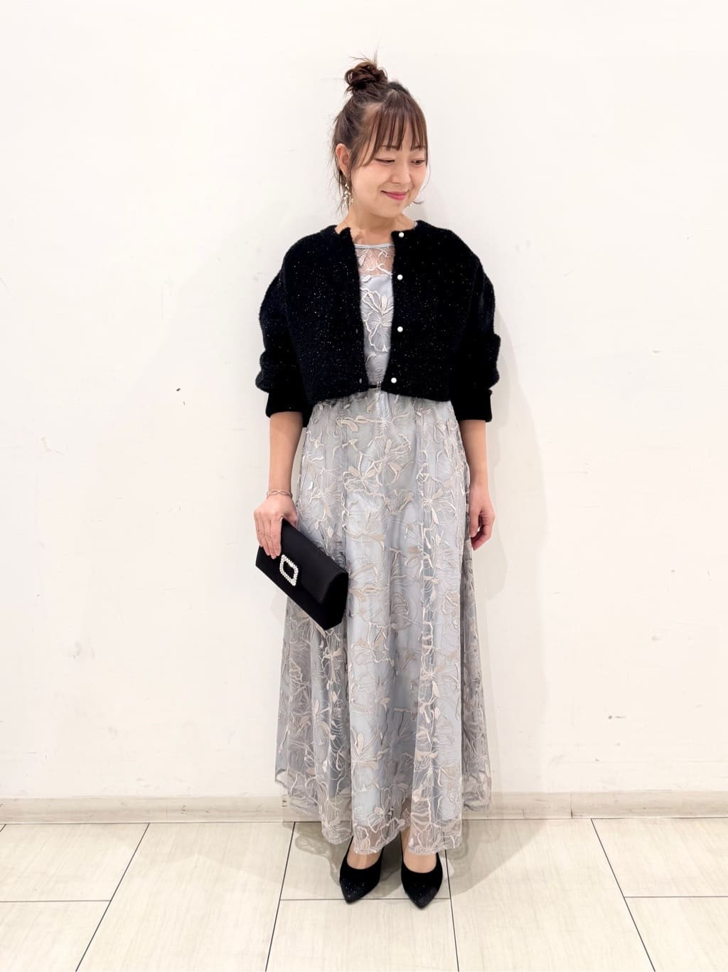 長め丈のフレアラインドレスなら体型をカバーしながらエレガントで大人フェミニンな印象に。パーティーやイベントでのドレスアップならレースや刺繍など華やか見えするドレスもおすすめ。