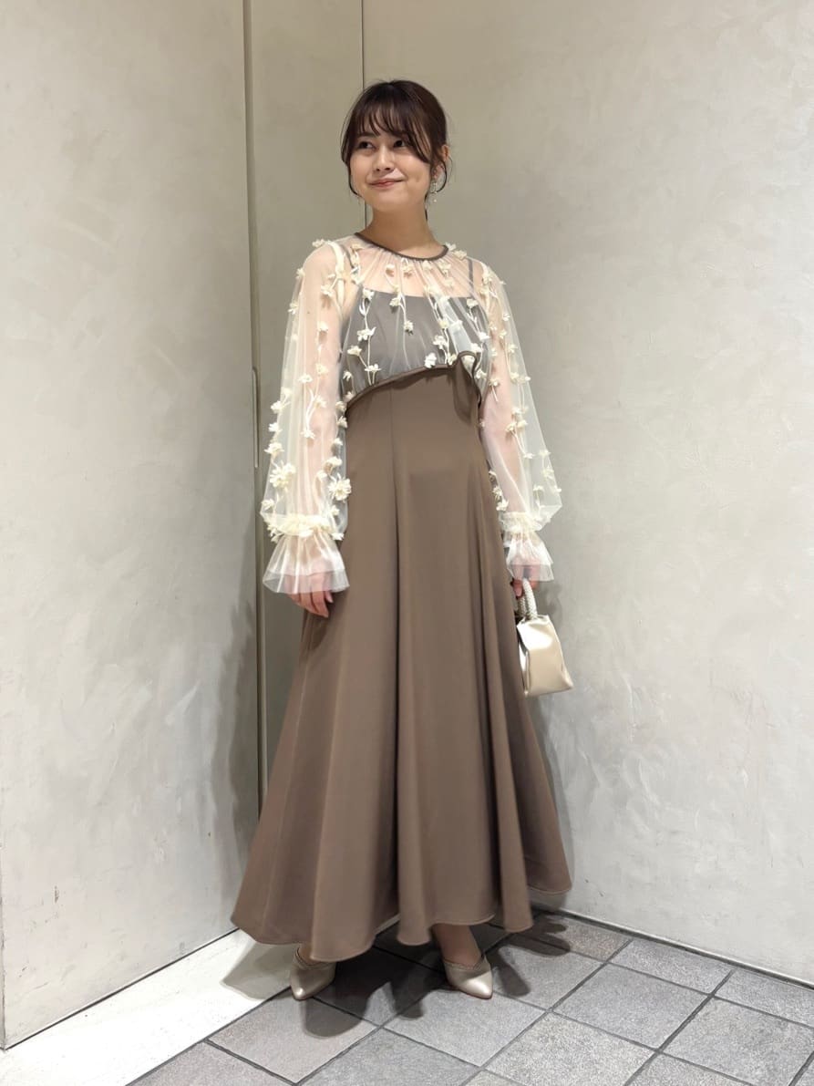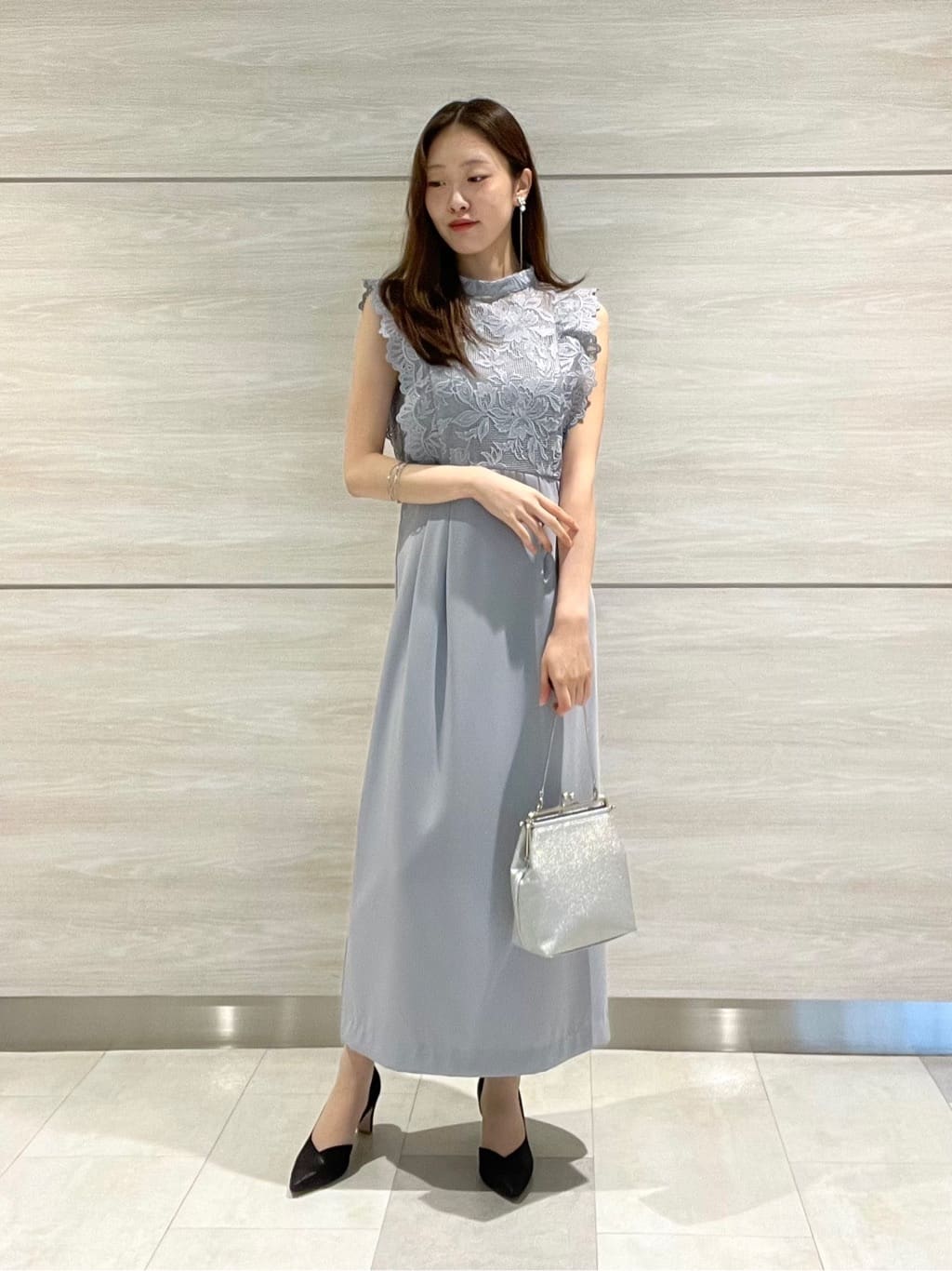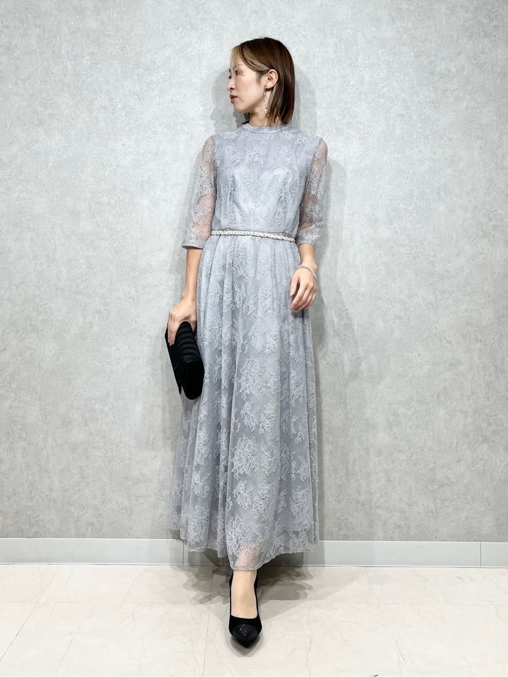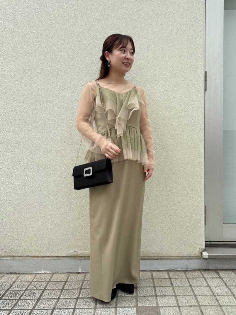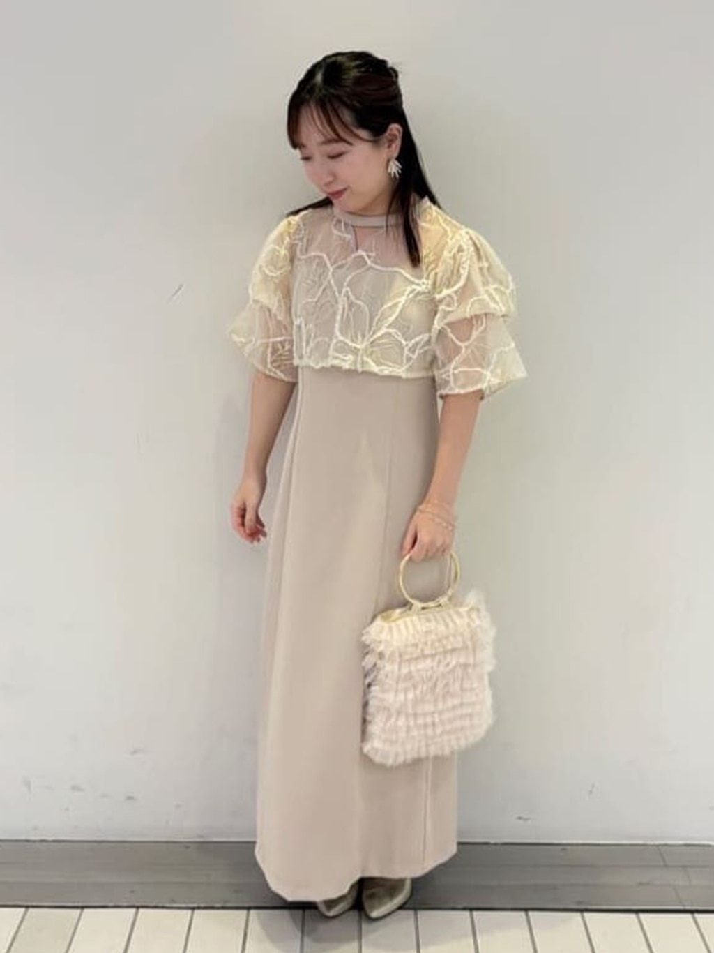 長め丈のフレアラインドレスなら体型をカバーしながらエレガントで大人フェミニンな印象に。パーティーやイベントでのドレスアップならレースや刺繍など華やか見えするドレスもおすすめ。
