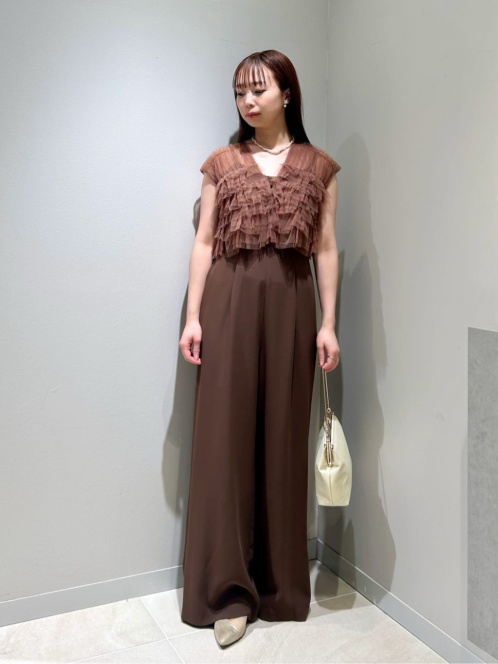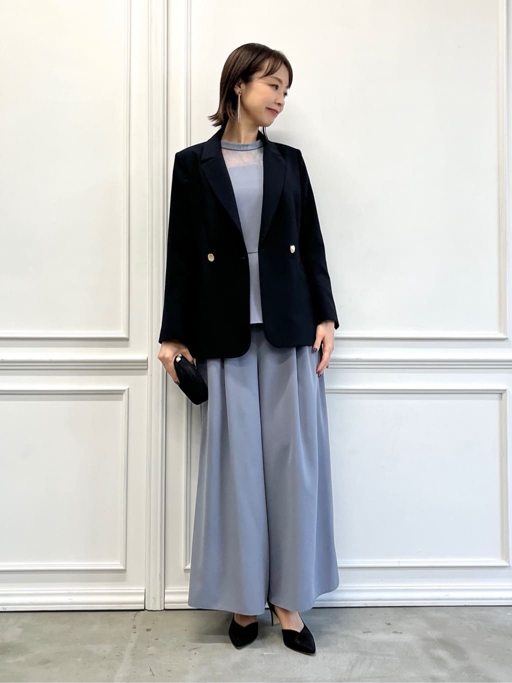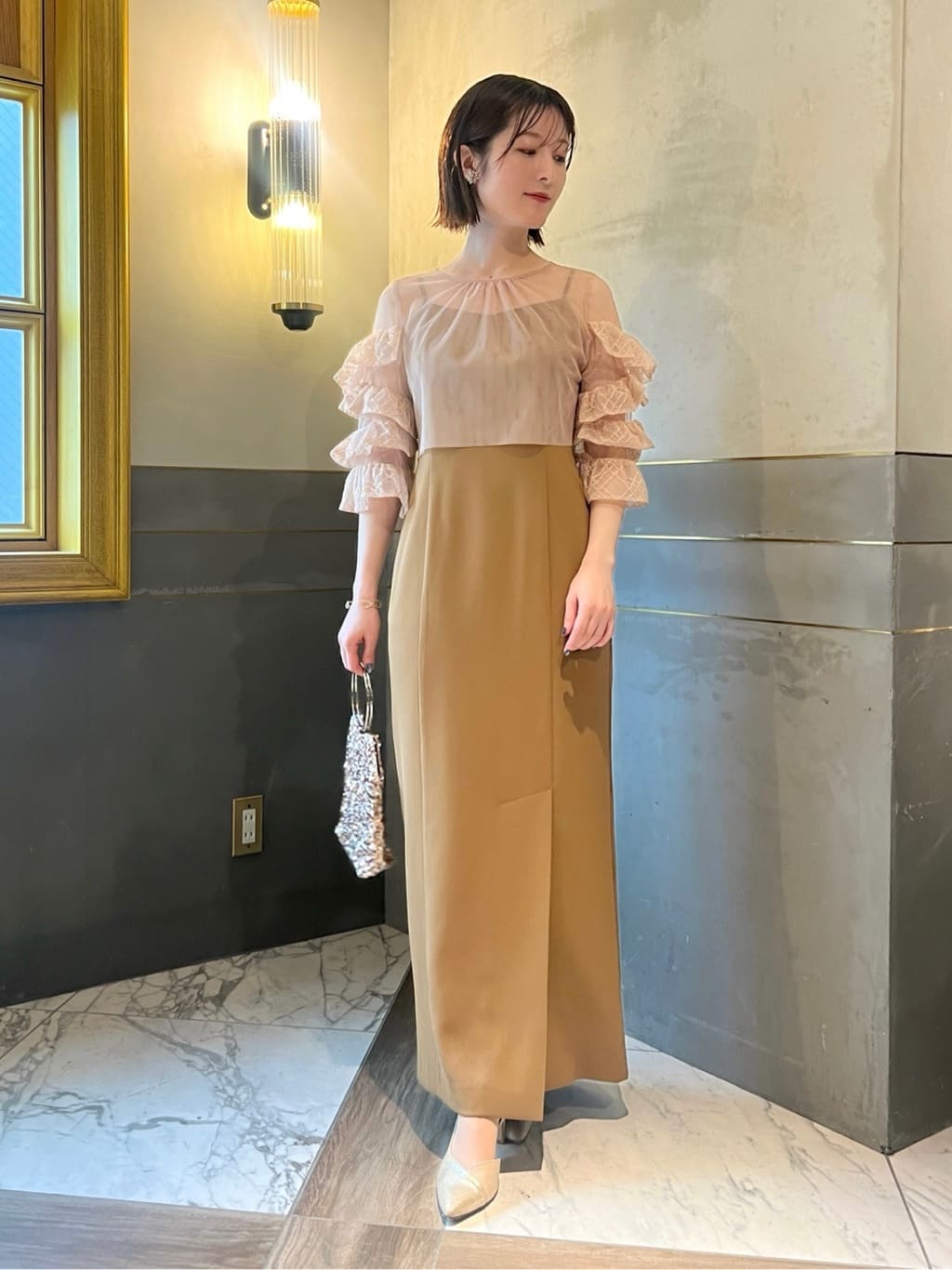Iラインやパンツドレスなど洗練されたシルエットのドレスならスタイリッシュな印象に。どこかトレンド感のあるディティールやレースを使っているデザインなら、クールになりすぎず程よく華やかさをプラス。
