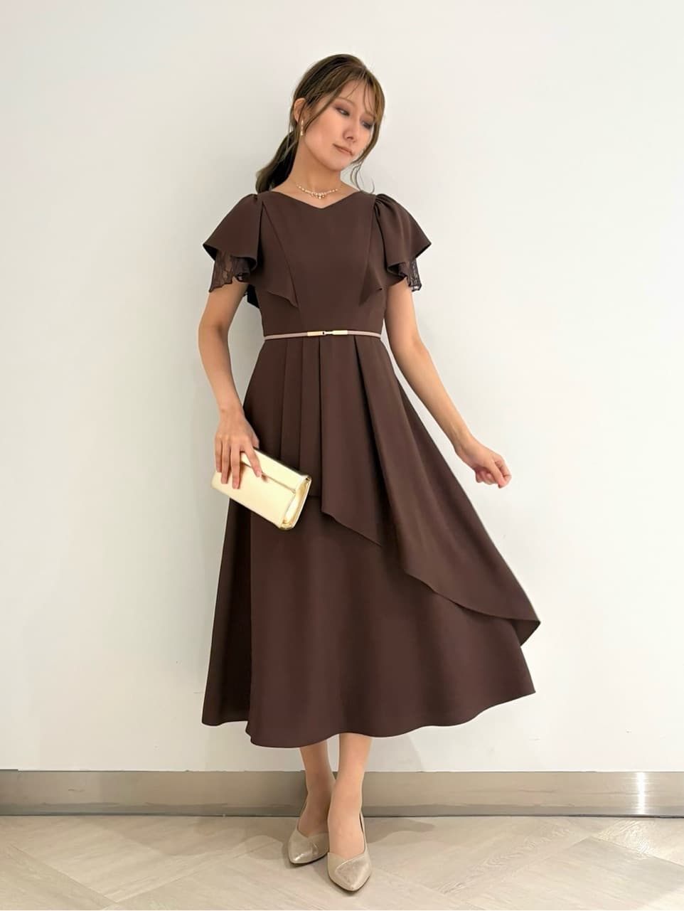 印象的なレースやさりげなく煌めくスパンコールを使用したドレスなら、上品で大人フェミニンな雰囲気に。ギャザーやフレアデザインの袖付きデザインなら腕周りをカバーしながら程よく華やかさをプラス。