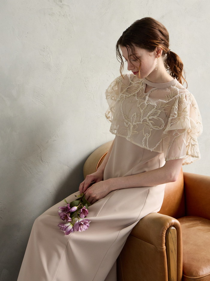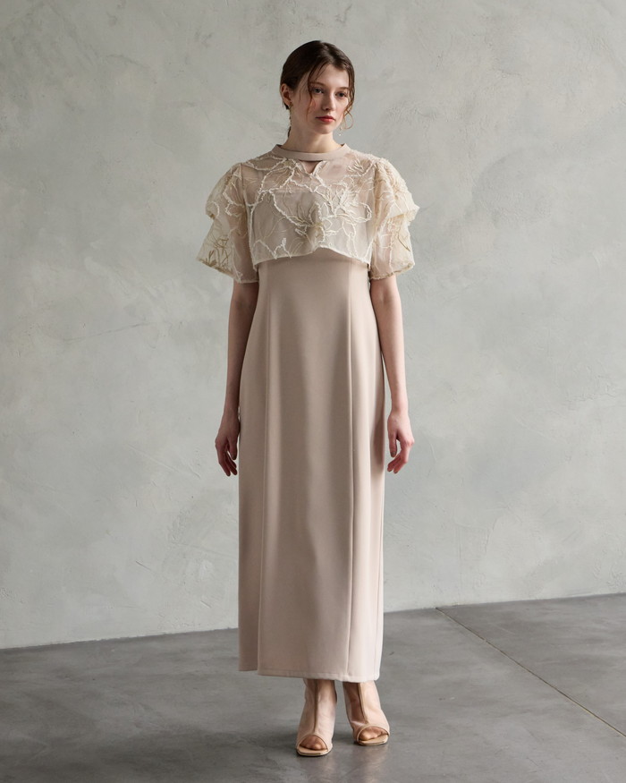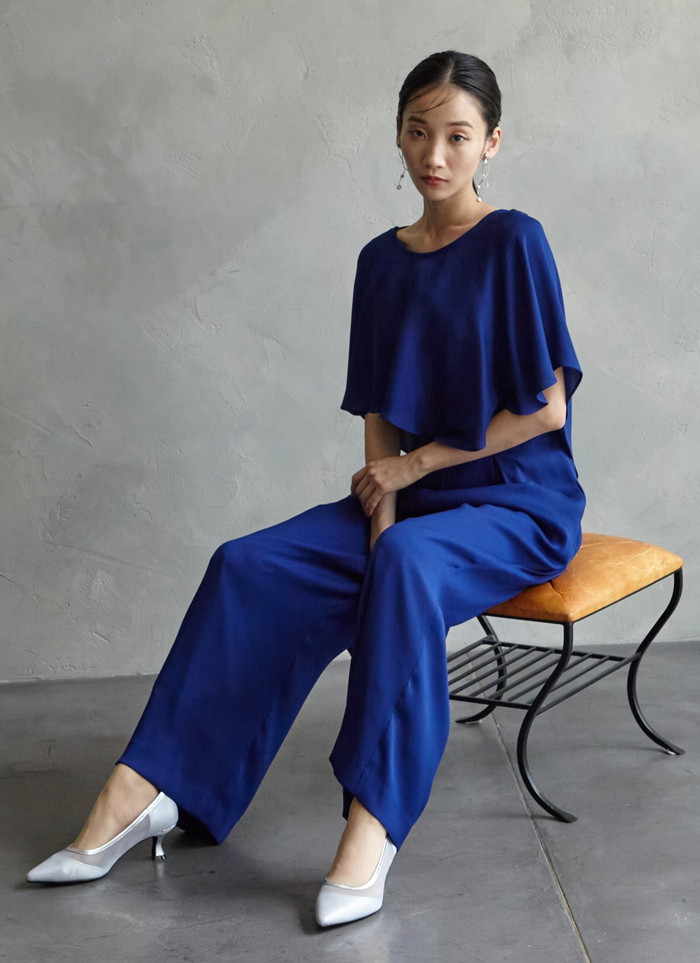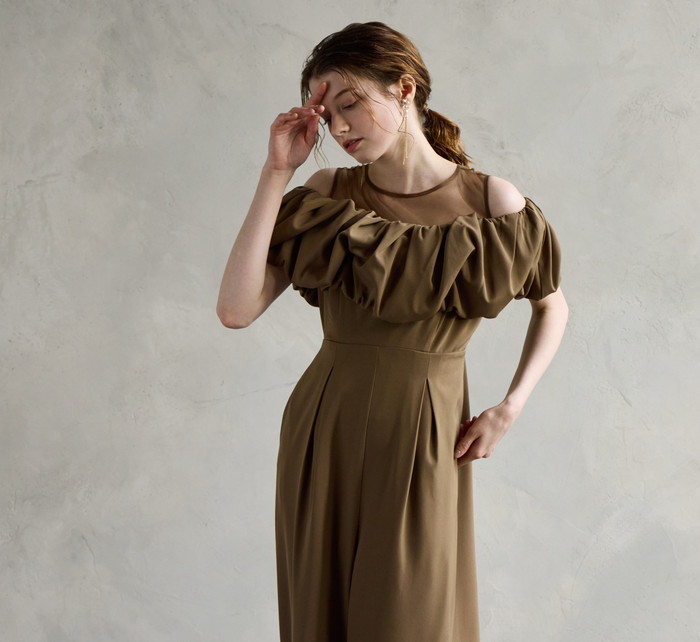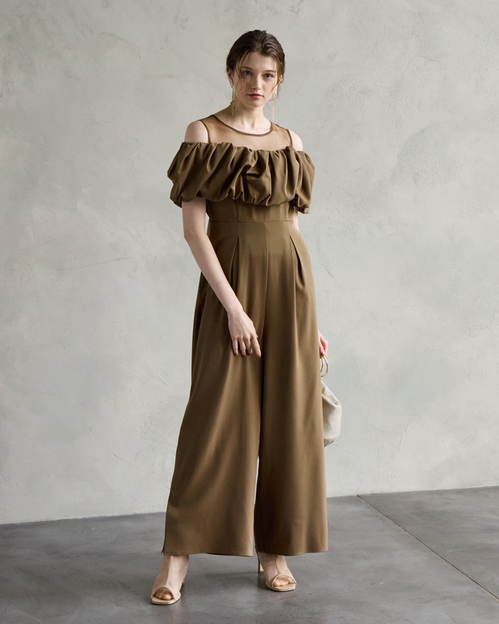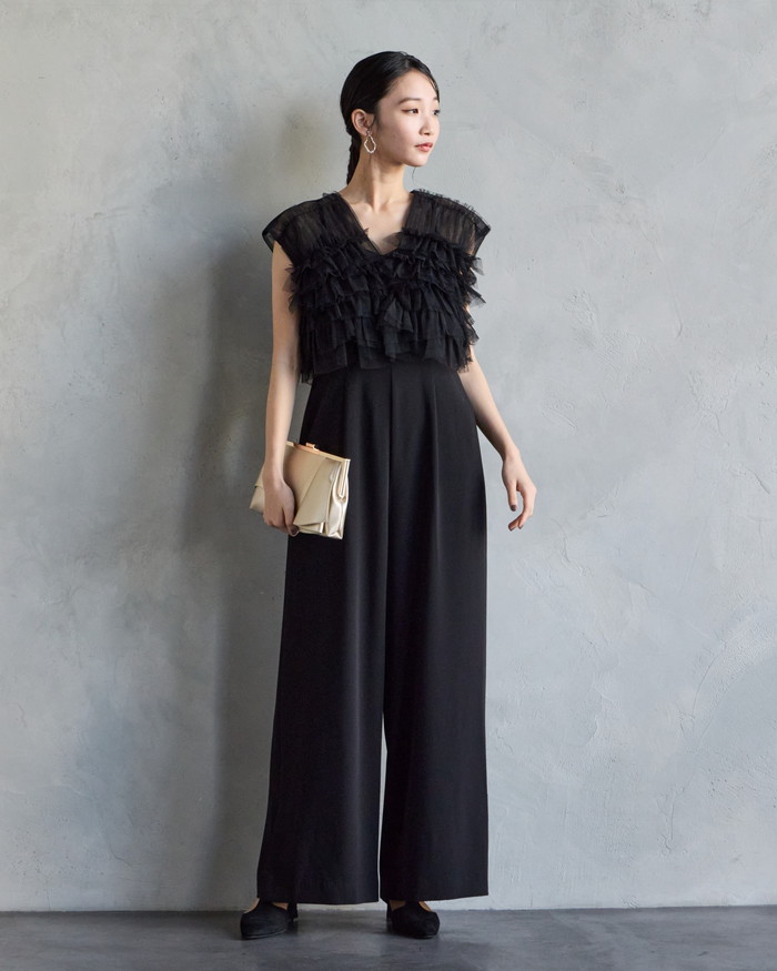 存在感のあるチュールフリルがトレンドライクなパンツドレス。シーンや気分に合わせて様々なスタイリングを楽しめる着回し力のある1着。