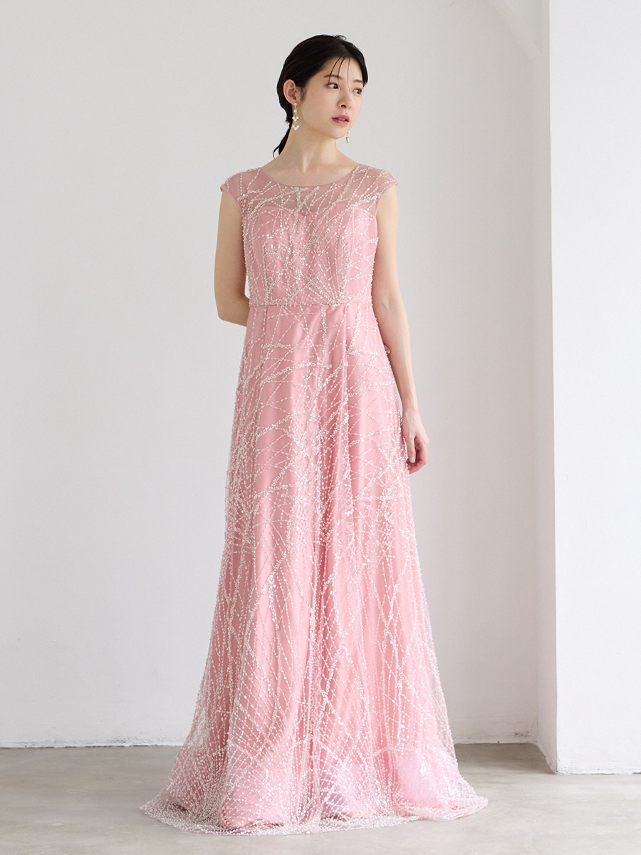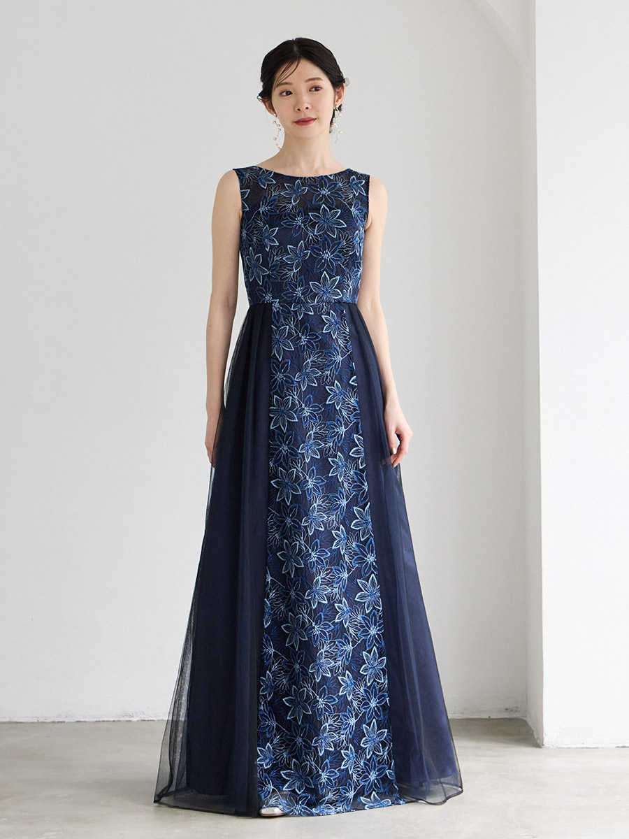 Celesta/チュール×ビーズ・スパンコール刺繍ロングドレス