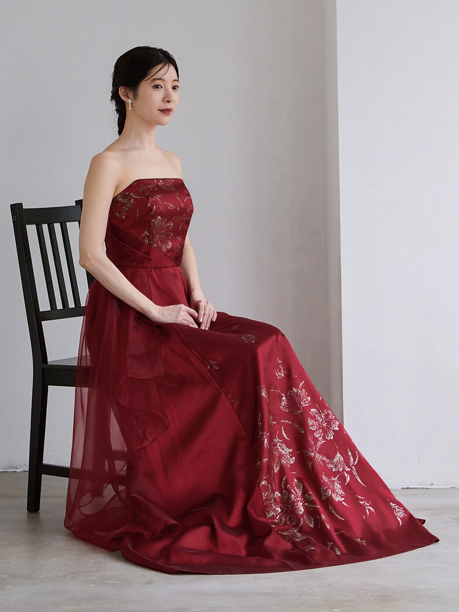 楽器を持たない声楽。舞台の空気を作るのは自らの声はもちろん、ドレスの印象に大きく左右されるもの。歌詞のストーリーにマッチするドレスを見つけるのも楽しみの一つ