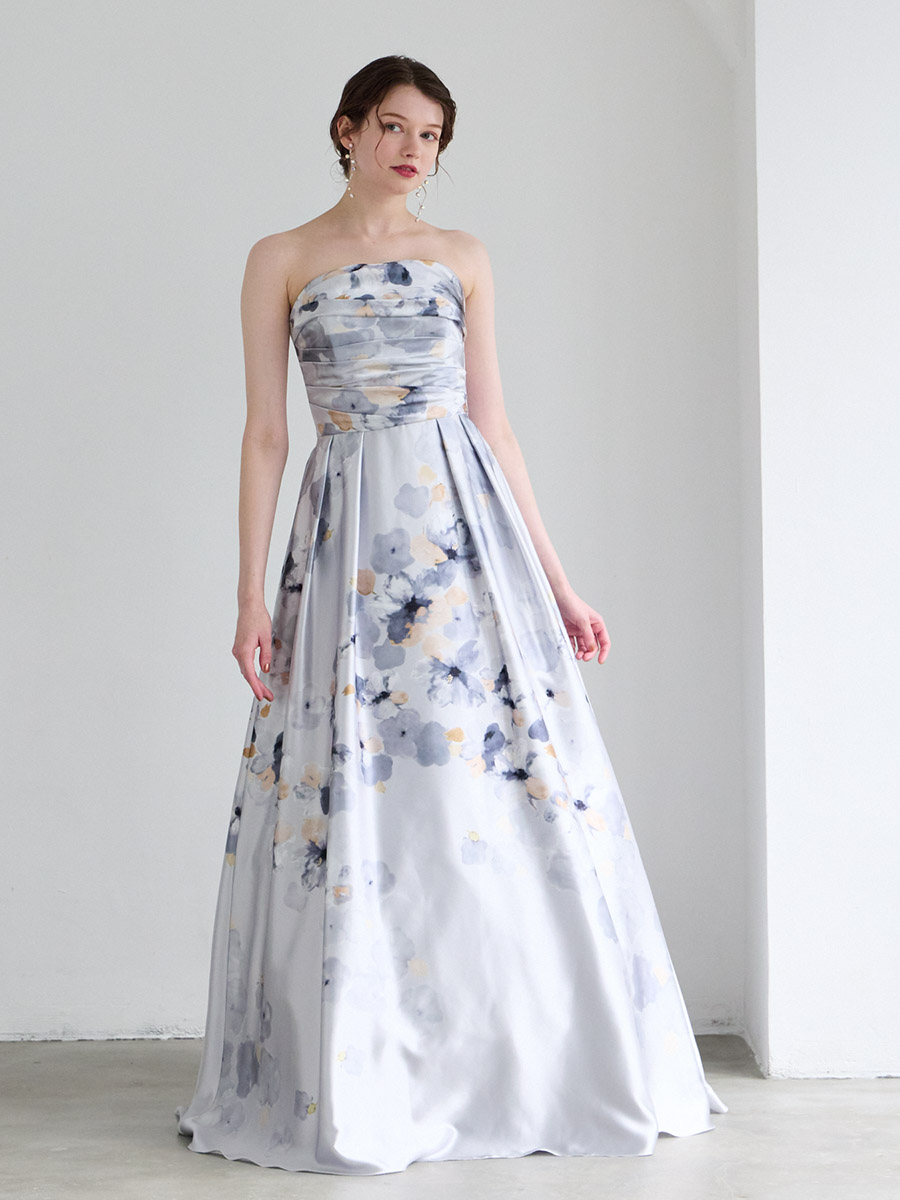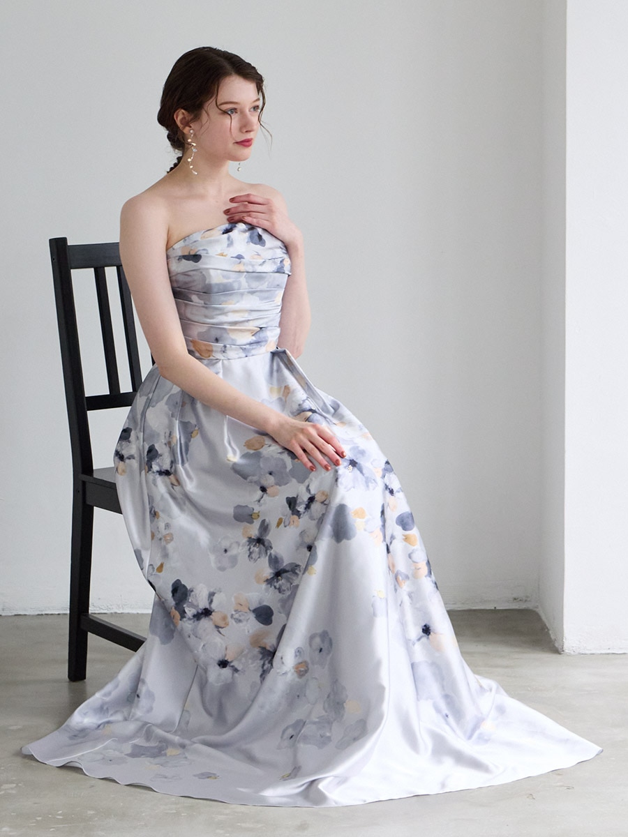 DRESS:Mist/サテン×フラワープリントロングドレス