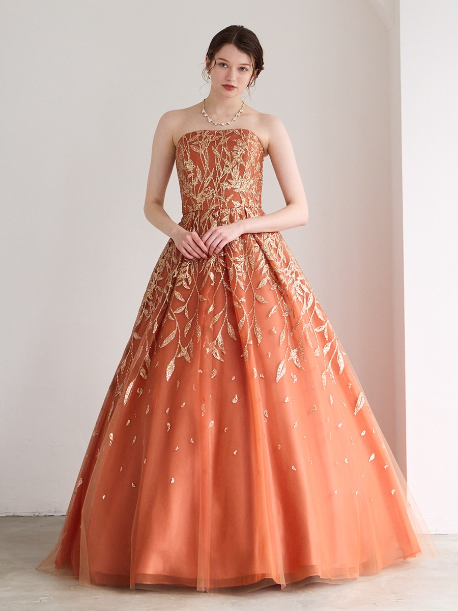 DRESS:Canora/ハードチュール×リーフモチーフラメグリッターロングドレス