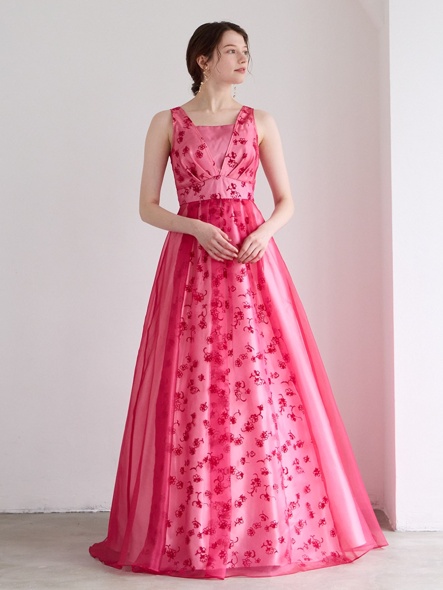 Roselle/オーガンジー×ラメフロッキーロングドレス