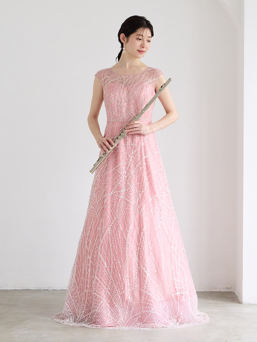 管楽器と一口に言っても、楽器によって音色も見た目も様々。フルートやクラリネットは楽器が引き立つようドレスのボリュームは比較的控えめ、ホルンやトロンボーンは楽器に重量感があるのでドレスは重すぎない方がベター。アンサンブルも多く、ドレス選びも調和を大切に・・・