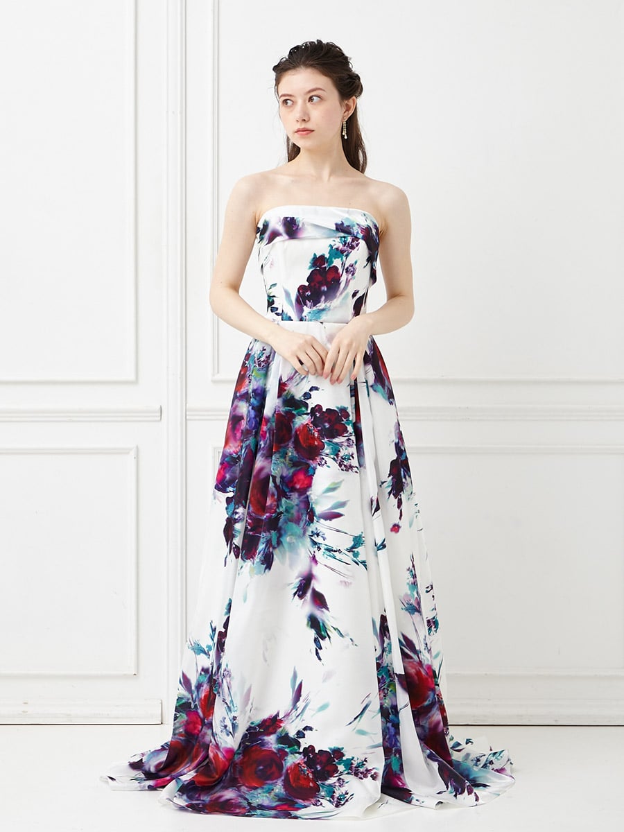 DRESS:Mist/サテン×フラワープリントロングドレス