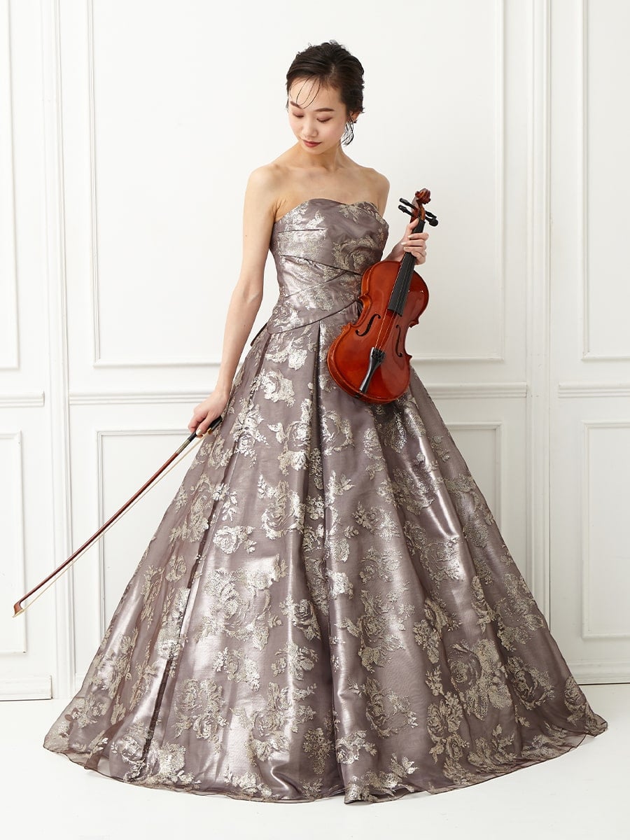 美しいフォルムと深みのあるブラウンのカラー。優雅で気品あふれるバイオリンは憧れの楽器。誰もが知っている楽器だからこそその存在感に負けない最高のドレスを・・・