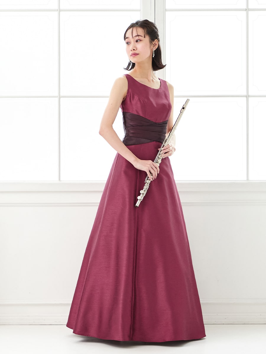 管楽器と一口に言っても、楽器によって音色も見た目も様々。フルートやクラリネットは楽器が引き立つようドレスのボリュームは比較的控えめ、ホルンやトロンボーンは楽器に重量感があるのでドレスは重すぎない方がベター。アンサンブルも多く、ドレス選びも調和を大切に・・・