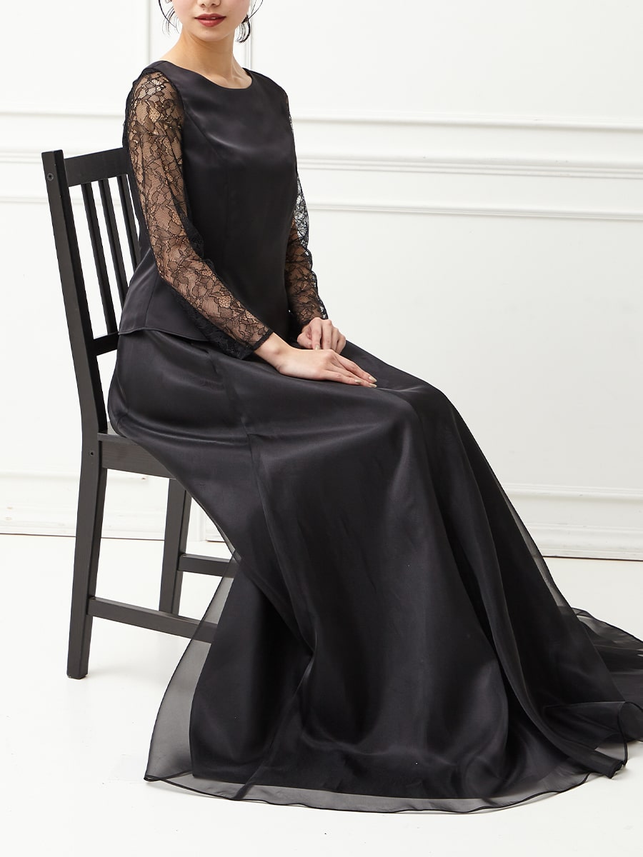 【WEB限定】2WAYラメニット×サテンスレンダードレス