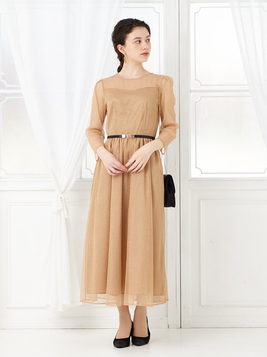 【WEB/Aimer Acret店限定】シャンブレーオーガンスリーブペプラムドレス
