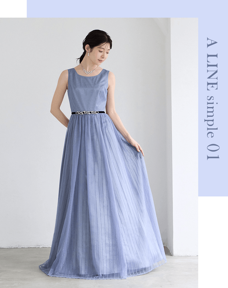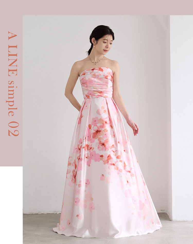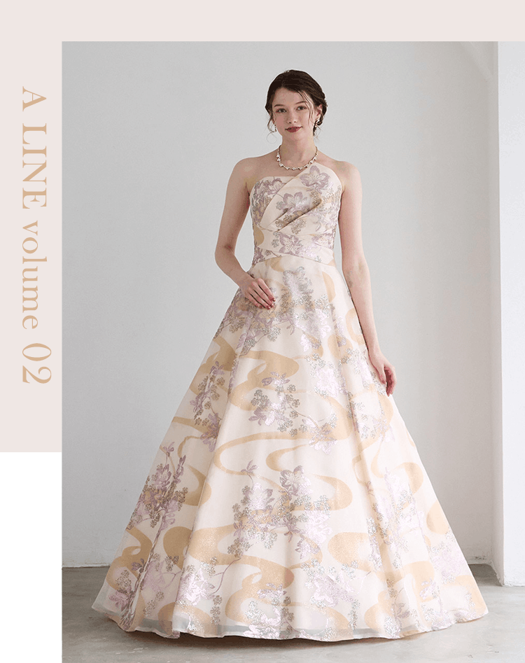 華やかさはありながら、すっきり見えを叶えてくれるAラインドレス。程よいボリューム感がどんなシーンにも使いやすく、人気の高いシルエットタイプです。パニエなしで着用いただくとスレンダードレスとしても活躍できます。