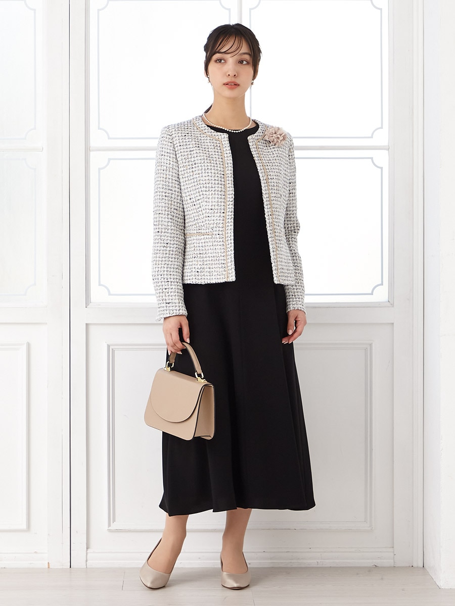 ブラックフォーマルは、主に葬儀や法要などで着用することをイメージされる方が多いと思いますが、『礼服』としてお祝いのシーンにも着用いただけます。