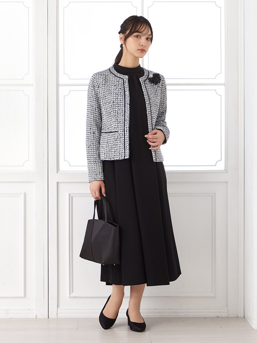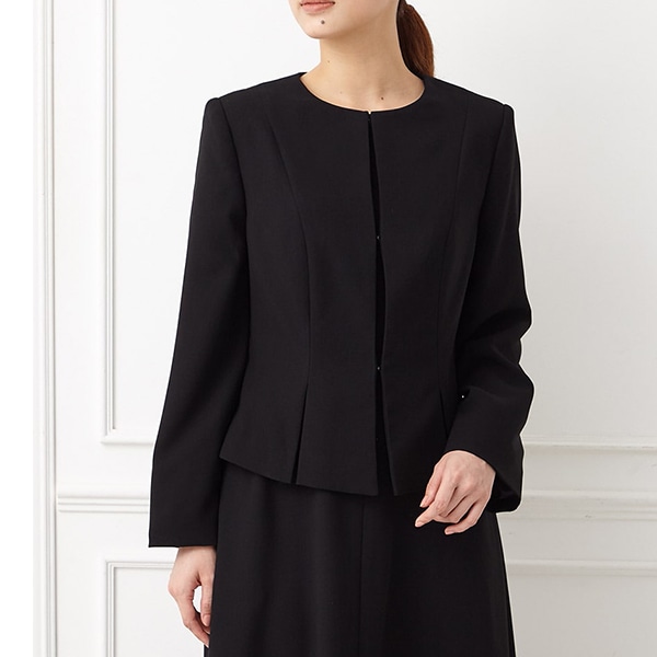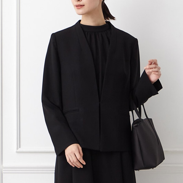 ワンピースと同素材のジャケットがございます。オールシーズン着用できる喪服として揃えておくならジャケットも合わせておくと、いざという時に安心です。組み合わせで迷っている方には、デザインブラックワンピース×ジャケットのセット商品がおすすめです。