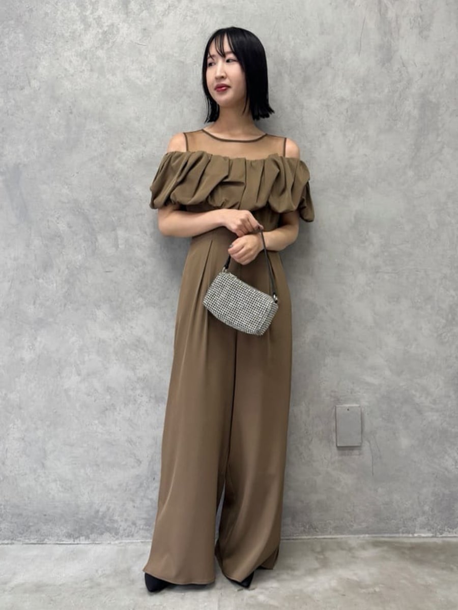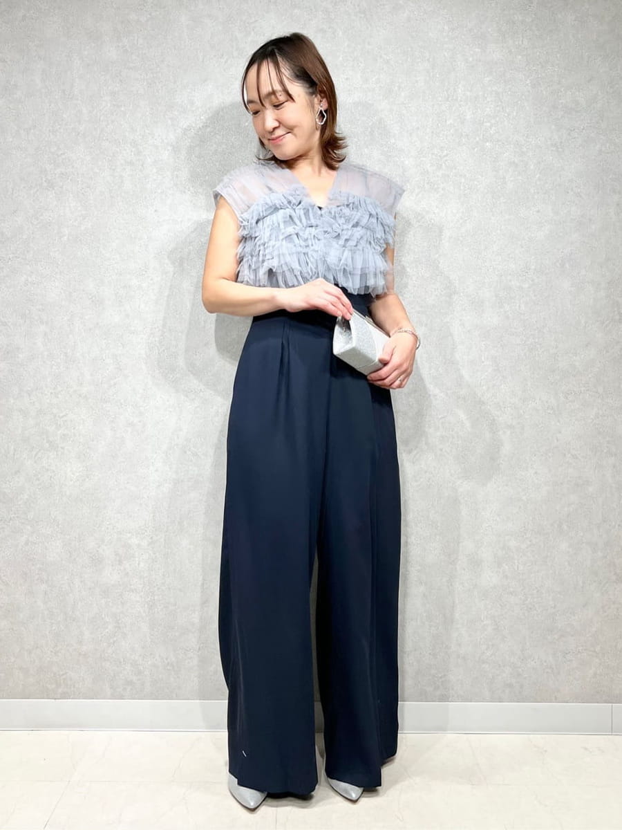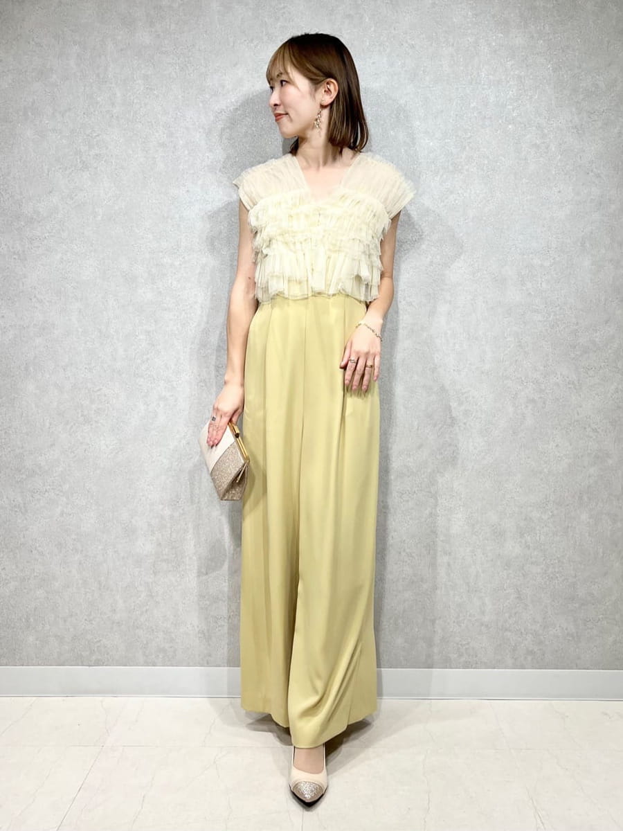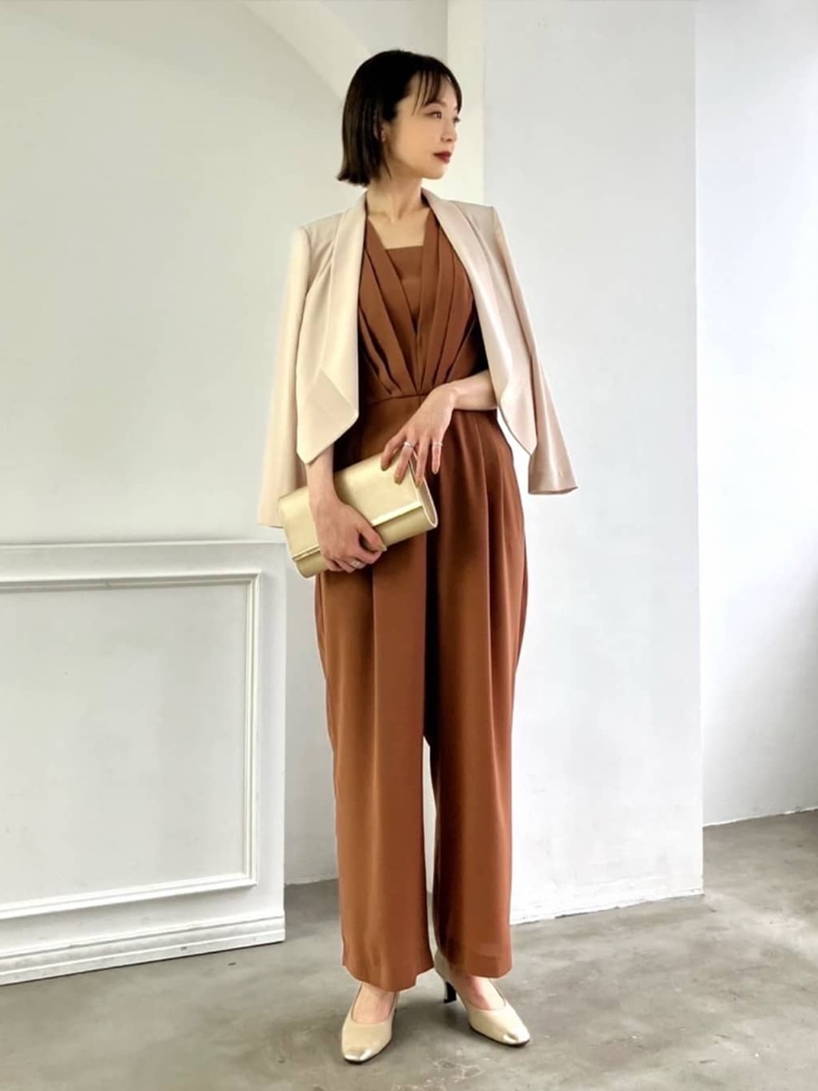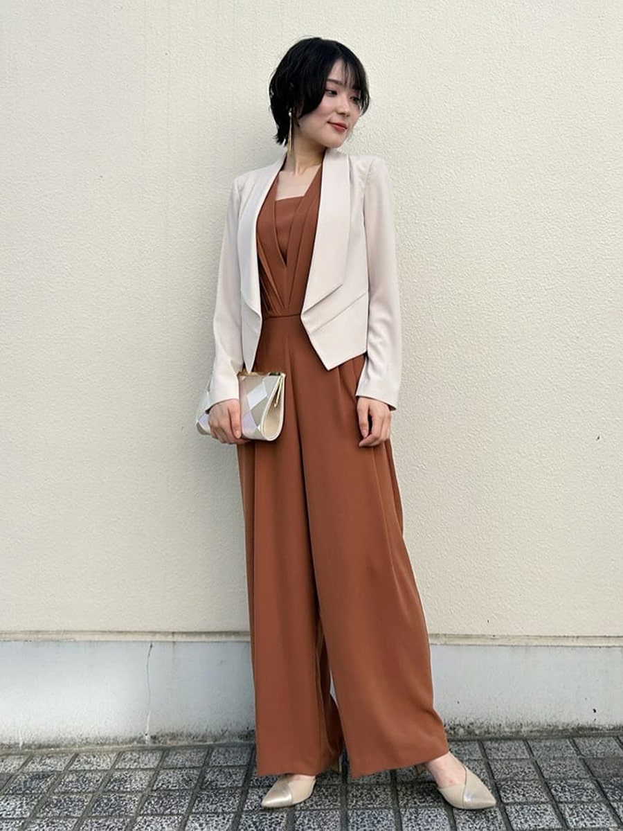 バランスよく着こなせます。パンツドレスはテーパードよりも