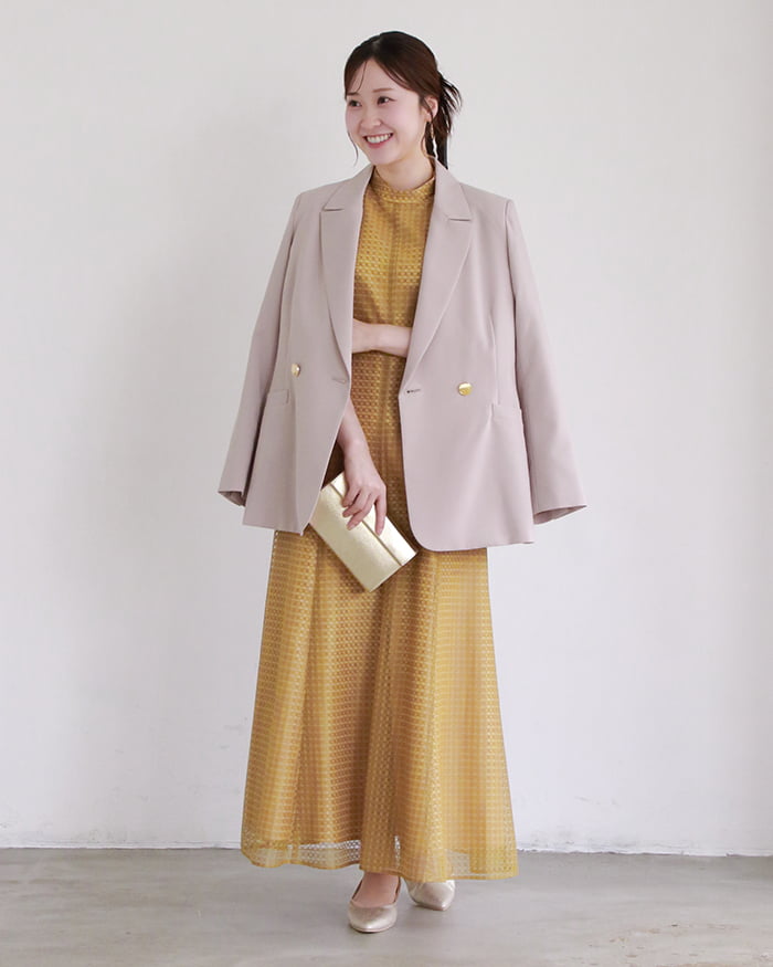 A.ドレスアップするときはマナーやある程度のきちんと感も大切ですが、「かしこまりすぎない」を意識してます。コーディネートだけでなく、ヘアメイクも抜け感をつくってナチュラルさを大切にすることがポイントです。