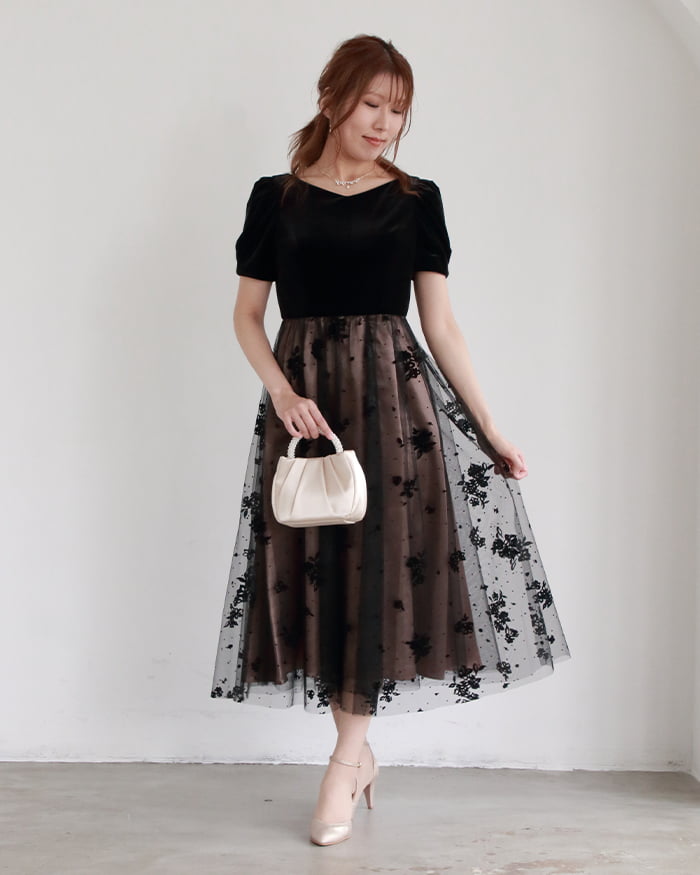 A.パールアイテムを取り入れたスタイリングを心がけています。アクセサリーはもちろんですが、バッグやサッシュベルトなどパールを使った小物が豊富なので、ぜひドレスと合わせてチェックしてみてください。