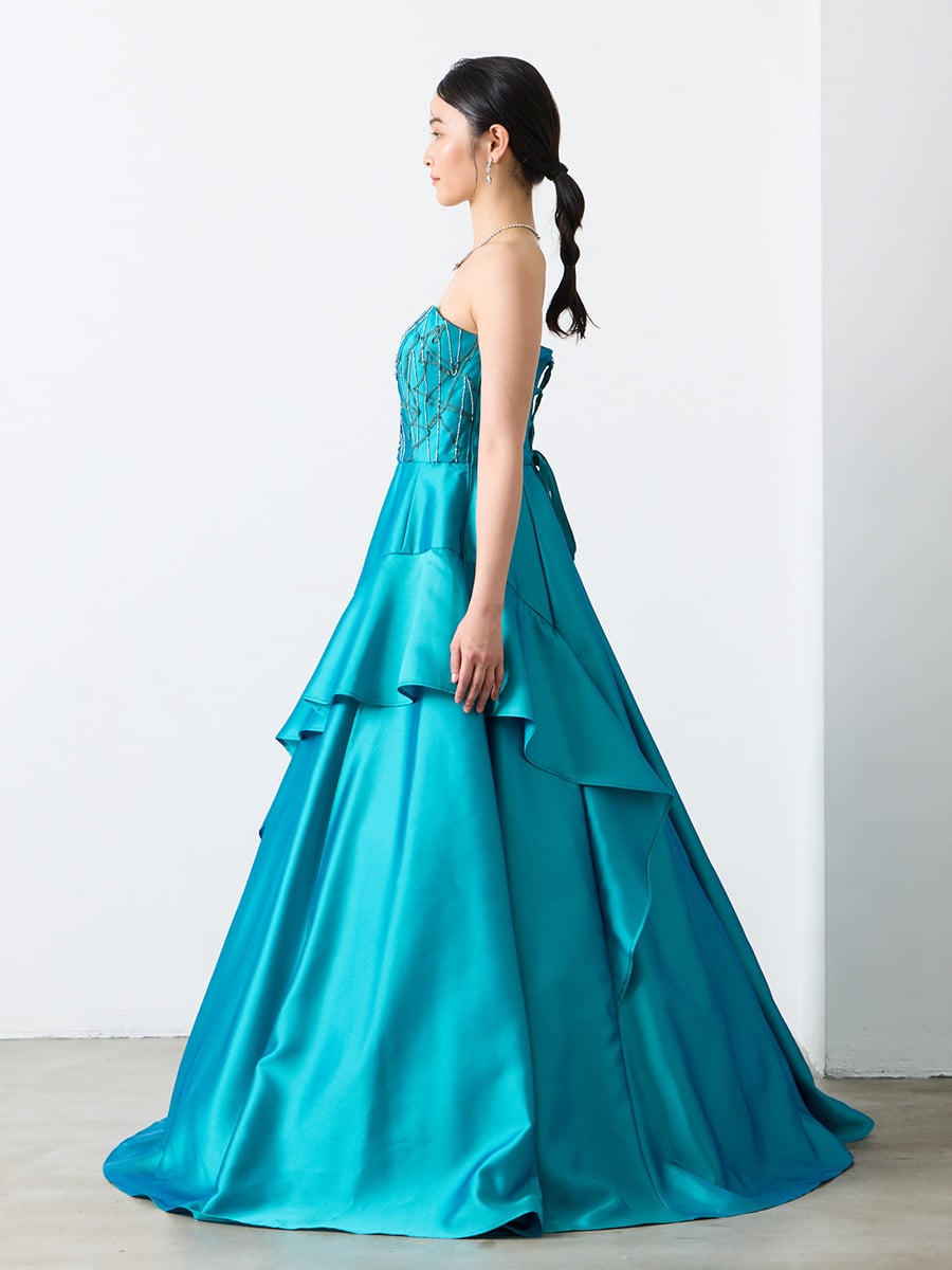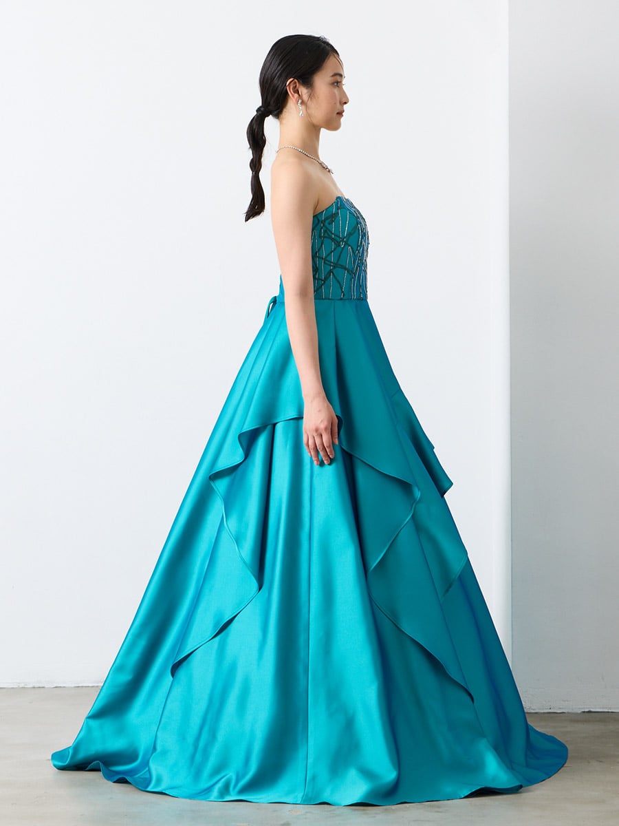 ・スカート部分にはアシンメトリーなラッフルデザイン