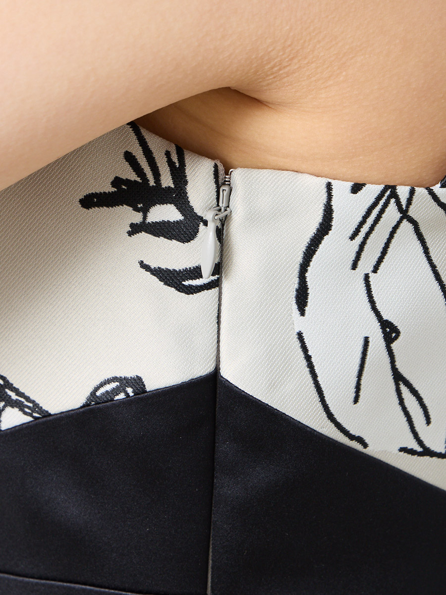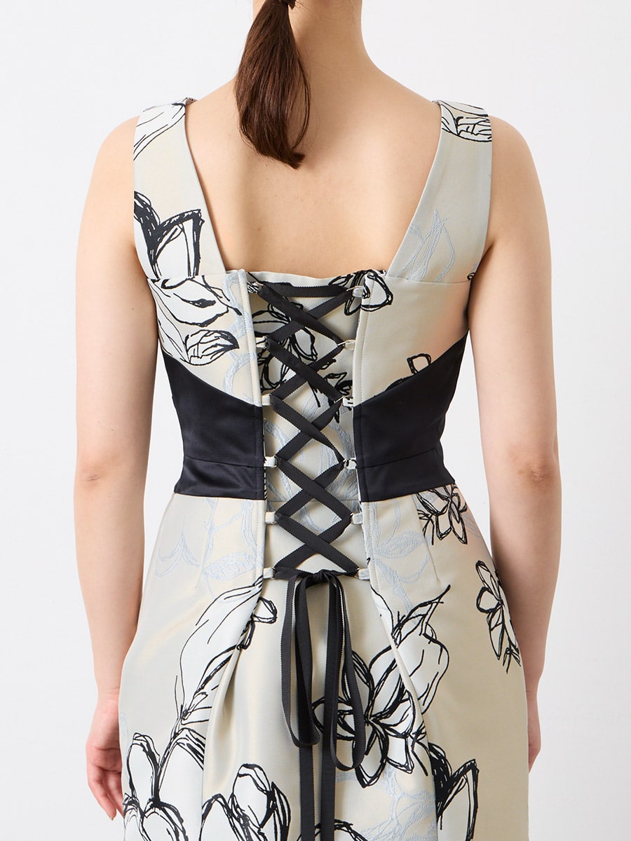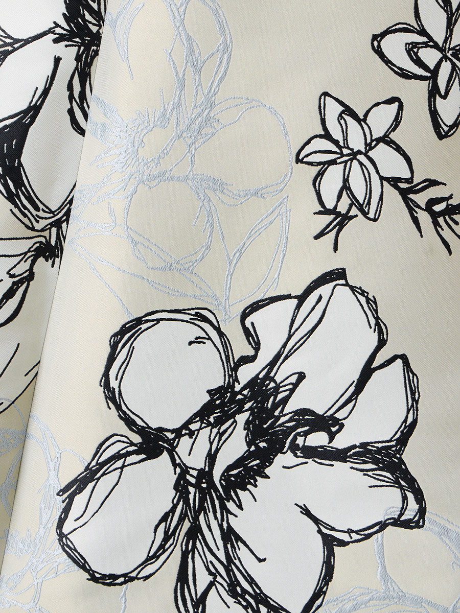 ・ジャガード生地のハリ感を活かしたソフトマーメイドラインのデザイン。