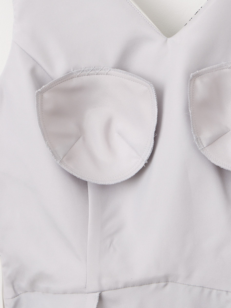 ・ウエスト部分にはブラックのサテン生地をクロスデザインにすることでよりすっきりとしたシルエットにしています。