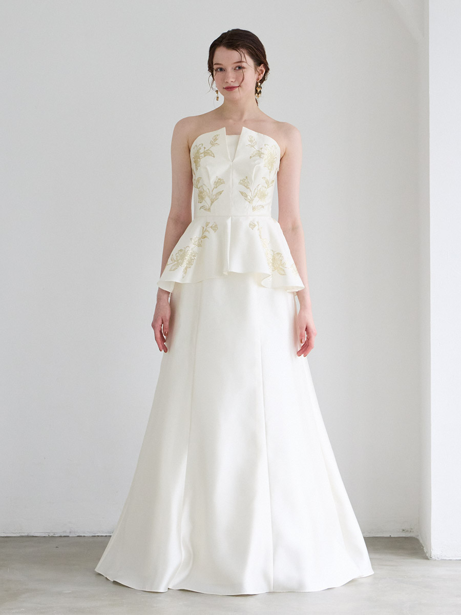 ・ペプラムデザインに合わせて描いたフラワーモチーフが目を惹くデザイン