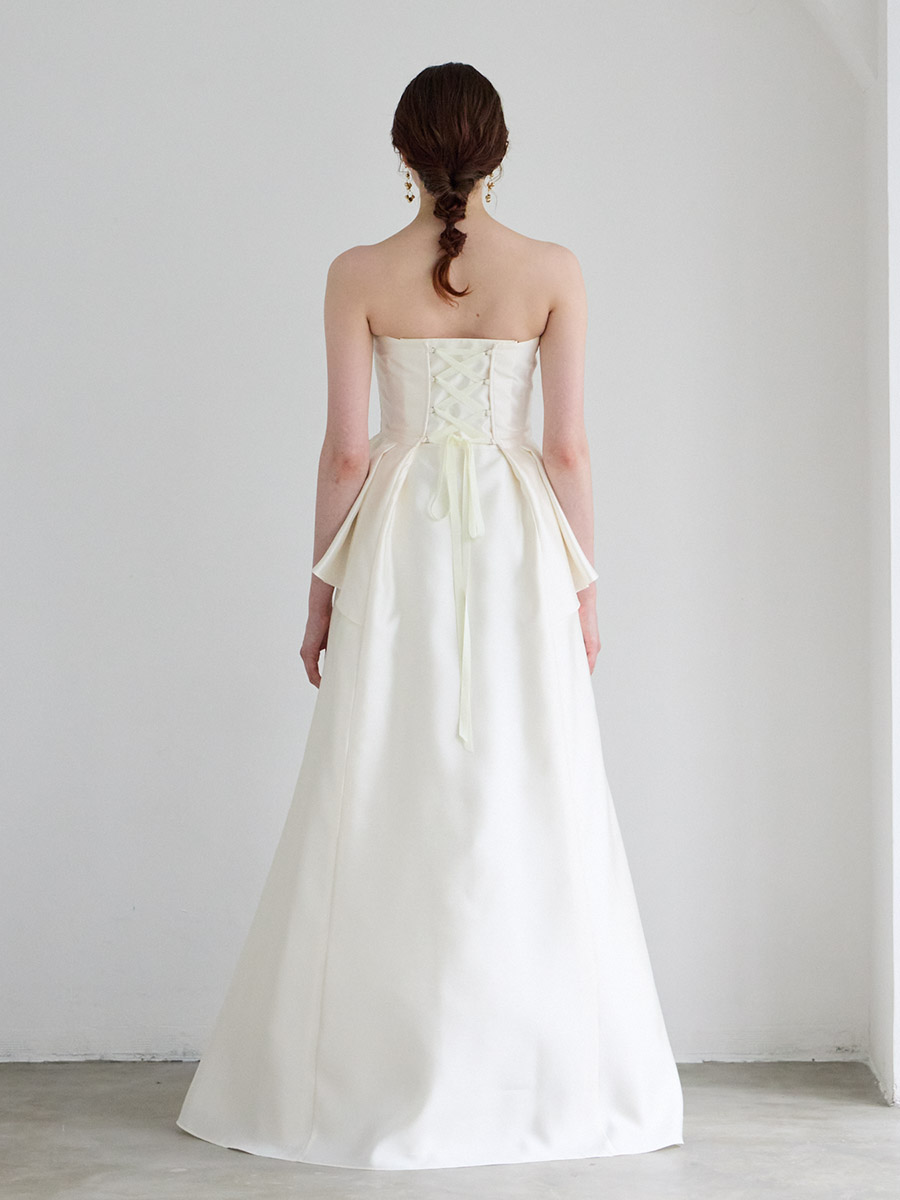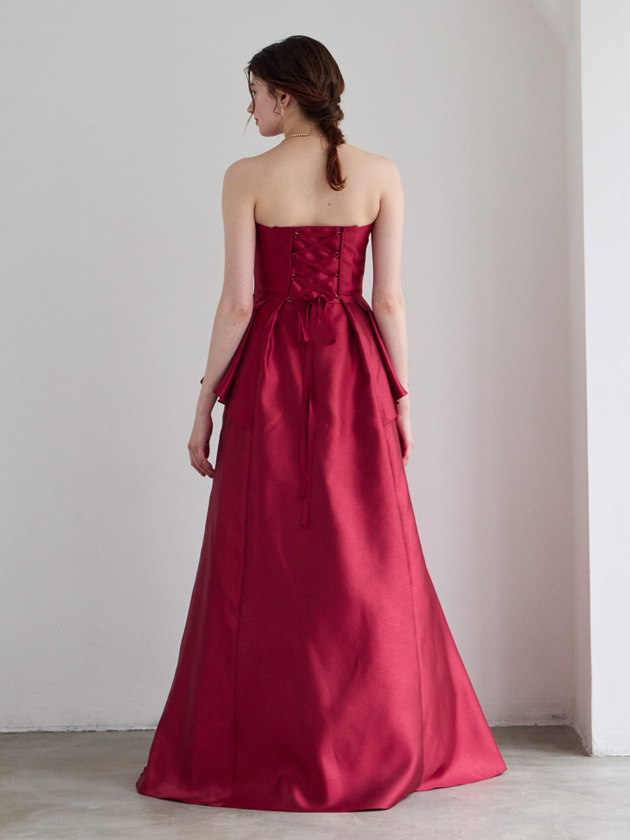 ・腰回りからヒップラインにかけたペプラムシルエットが上品なデザインです
