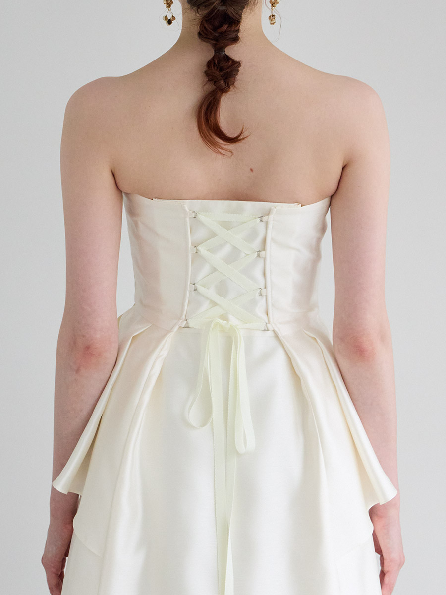 ・背中はサイズ調節のできるレースアップ仕様で、自身の体型に合わせてジャストサイズで着用いただけます