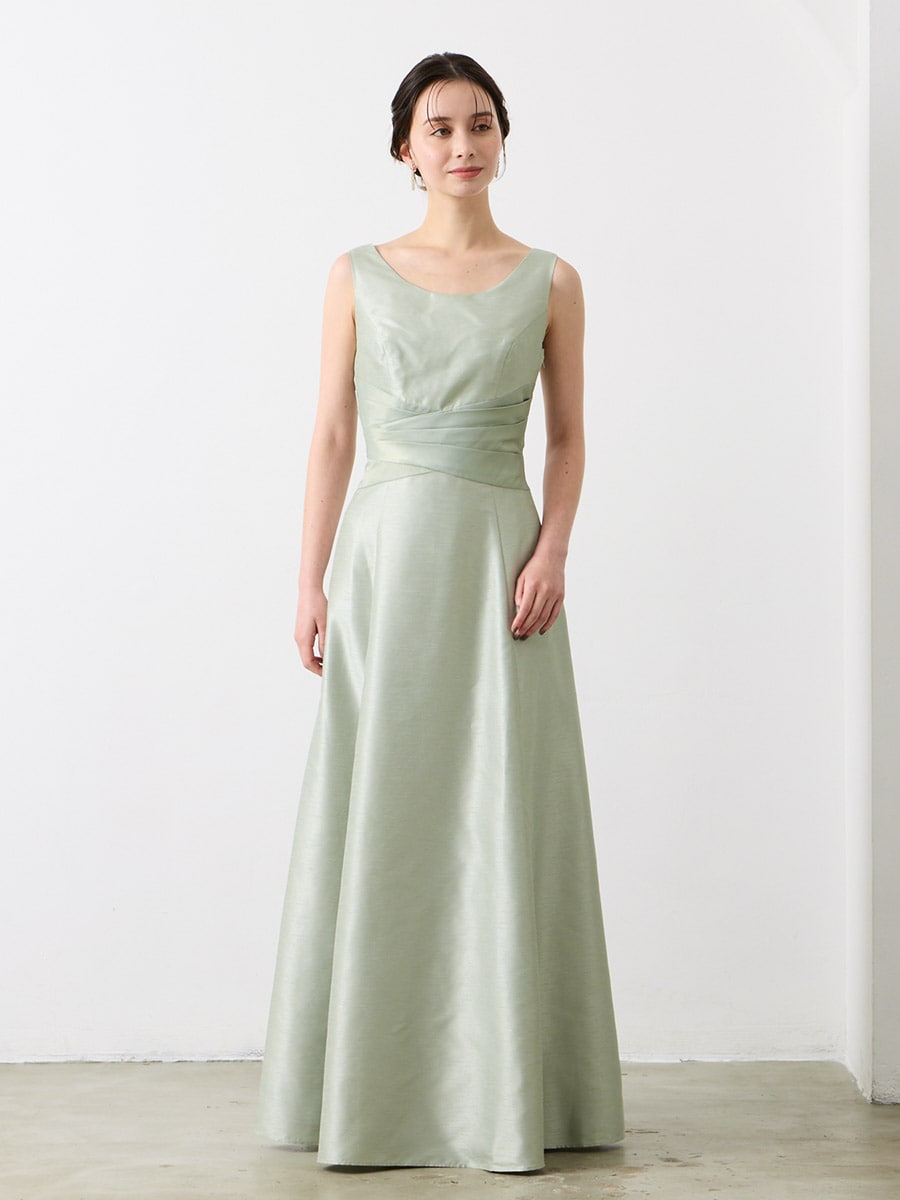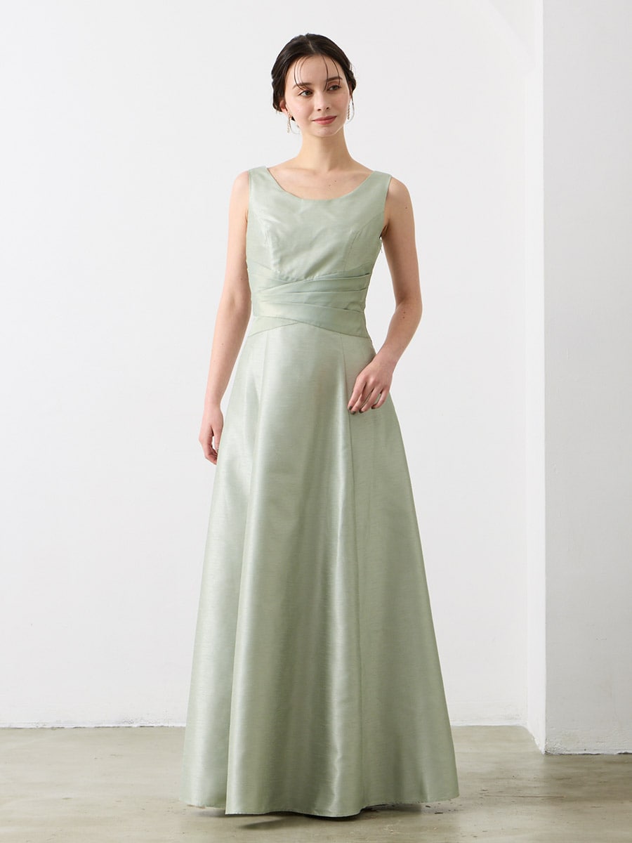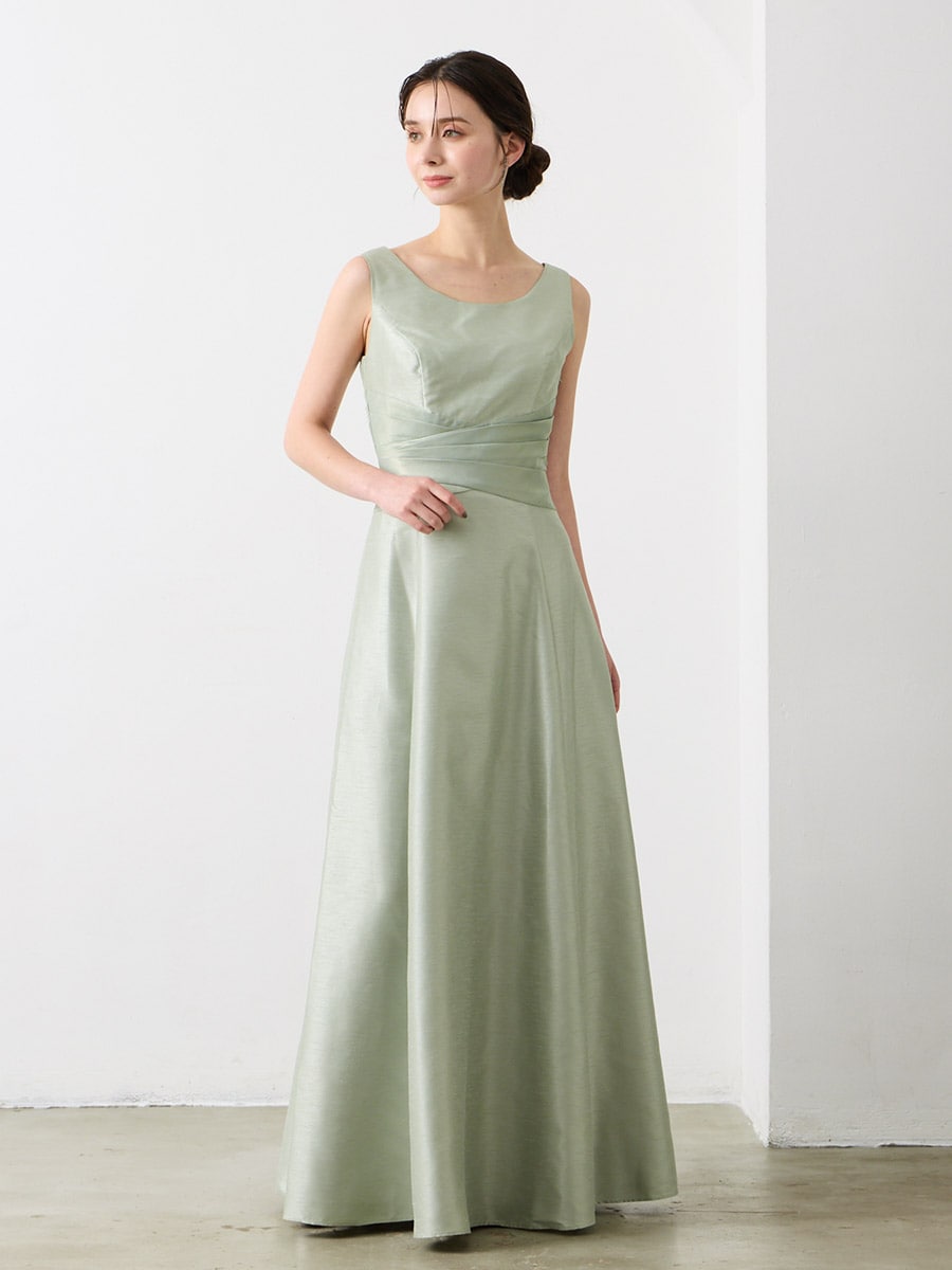 バックサテンシャンタンのマットな風合いが落ち着いた雰囲気のロングドレス