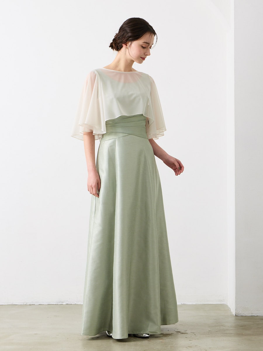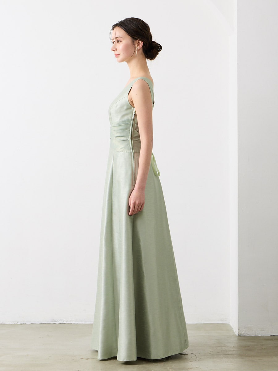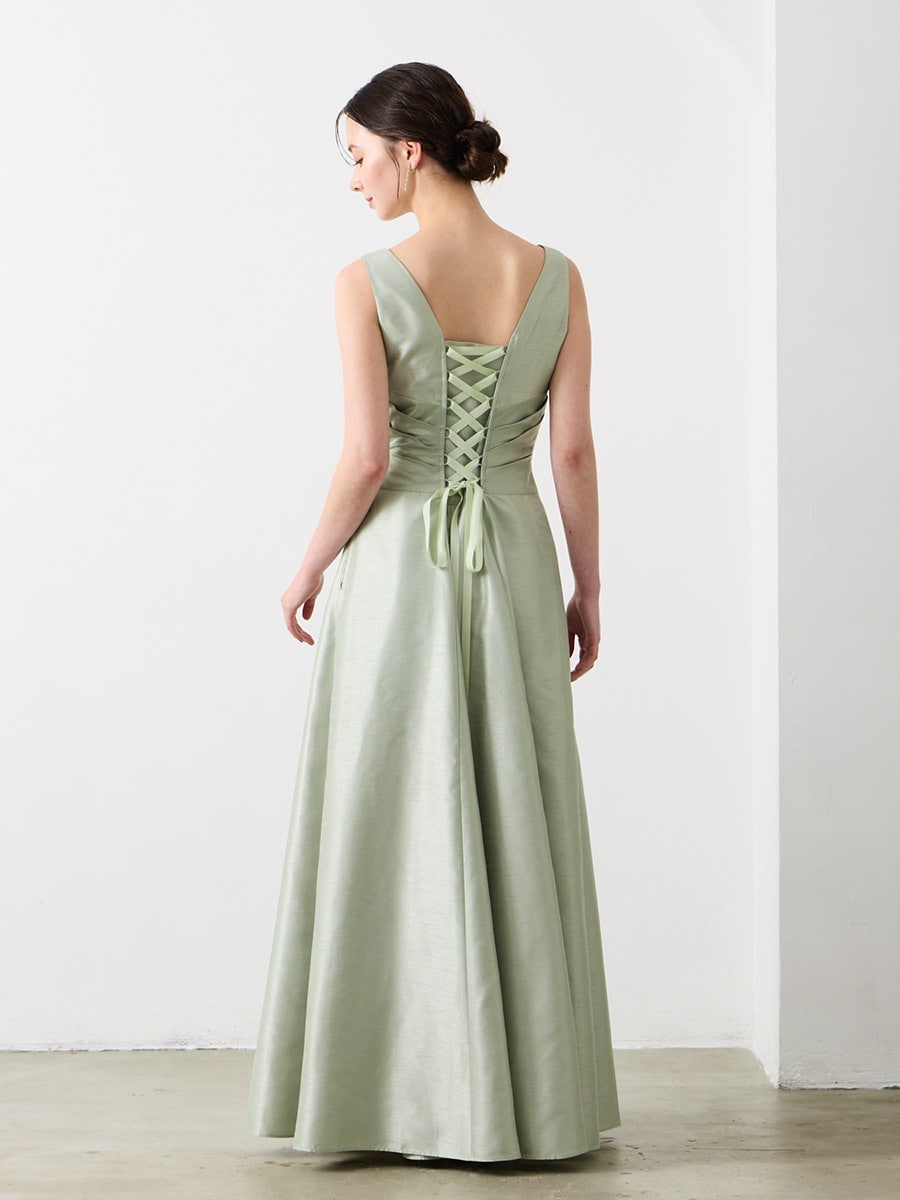 バックサテンシャンタンのマットな風合いが落ち着いた雰囲気のロングドレス