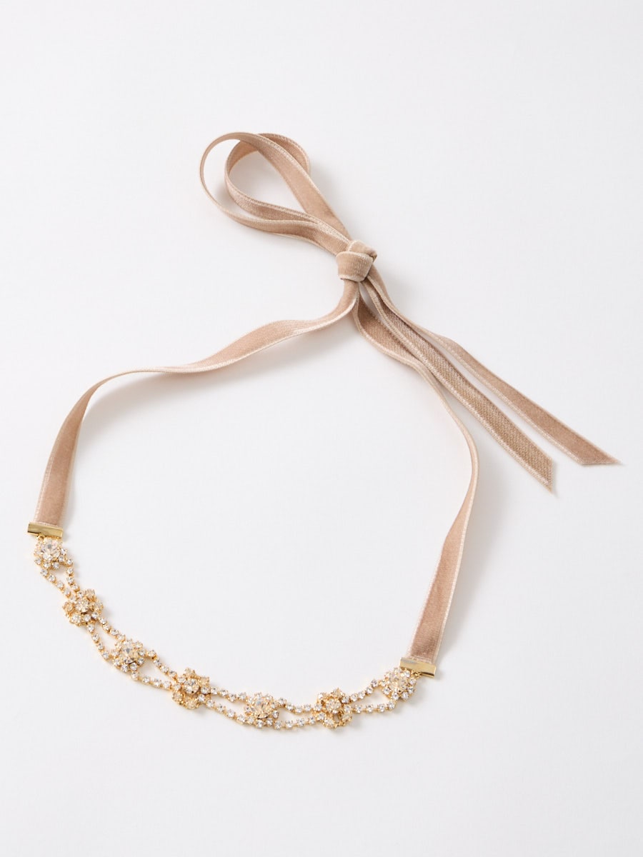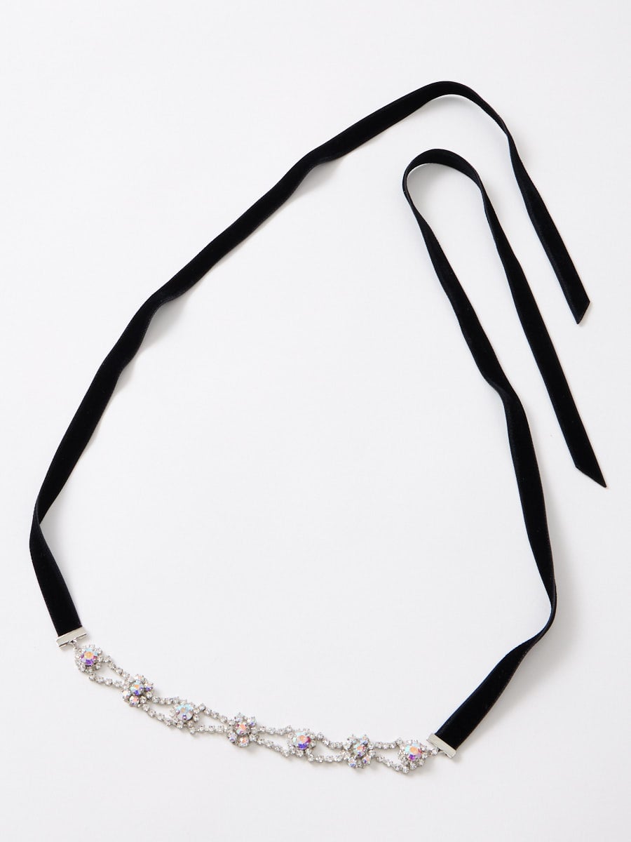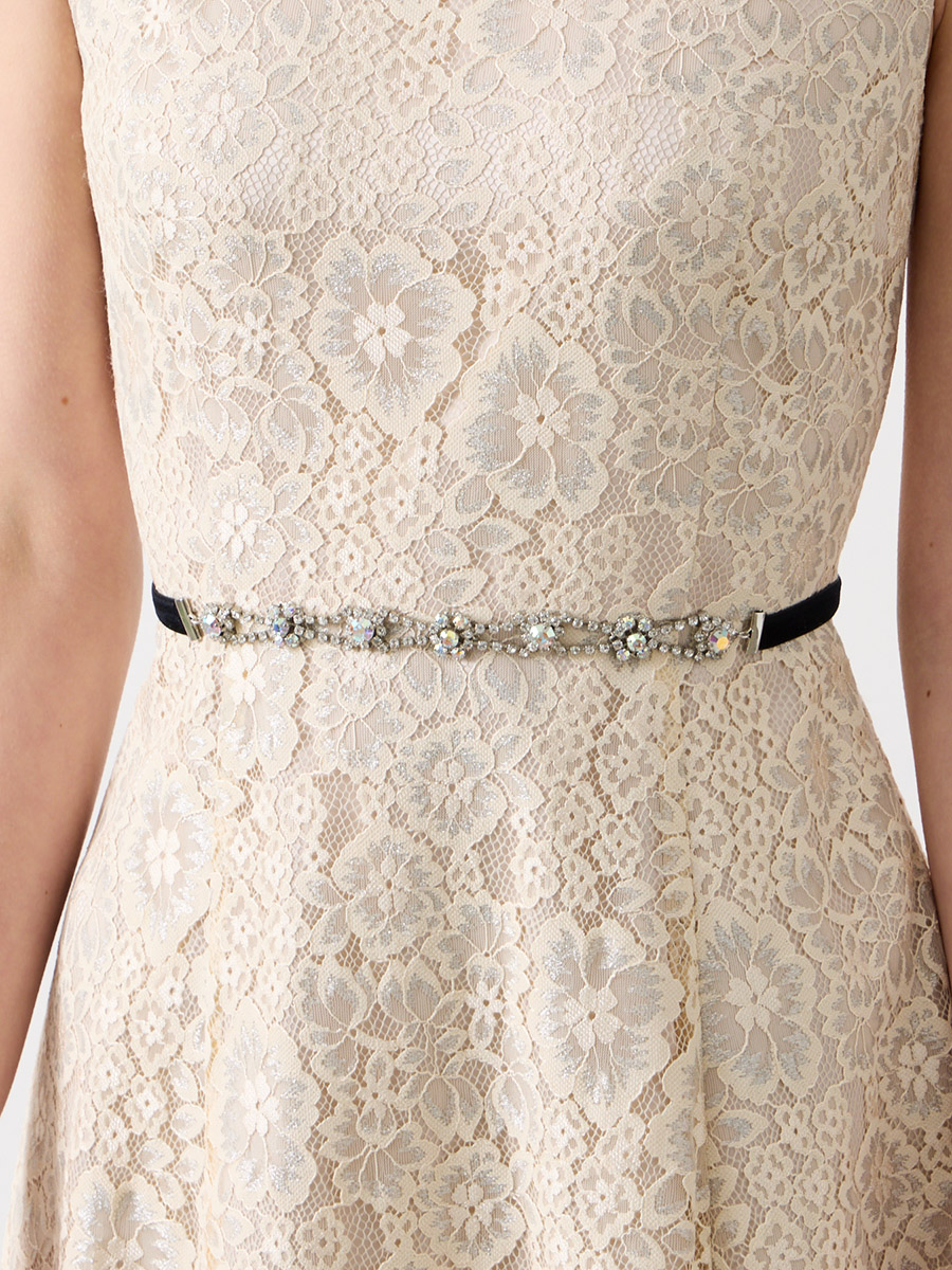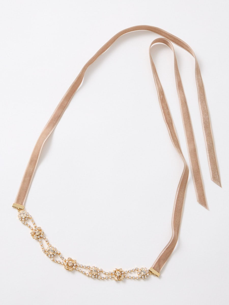 両サイドはベルベットリボンで結んで、調整が可能なサッシュベルトです。