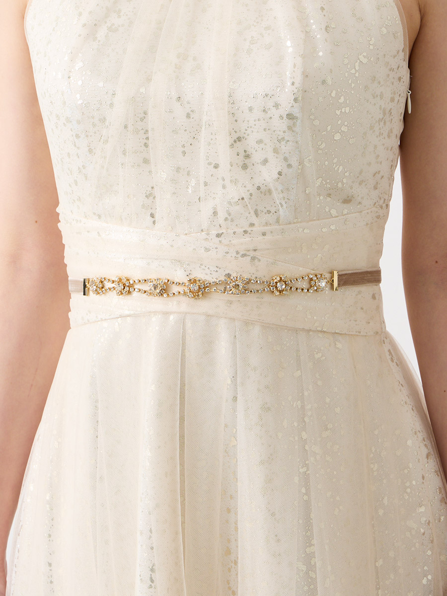 センター部分にモチーフがくることで、ウエストに華やかさと、程よい抜け感のある印象で着用していただけます。