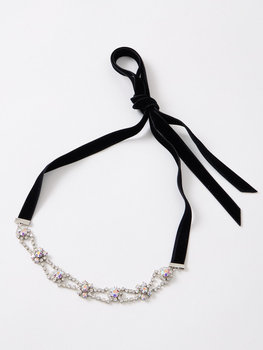 メッキ、真鍮、クリスタルカットガラス、ベルベットリボン