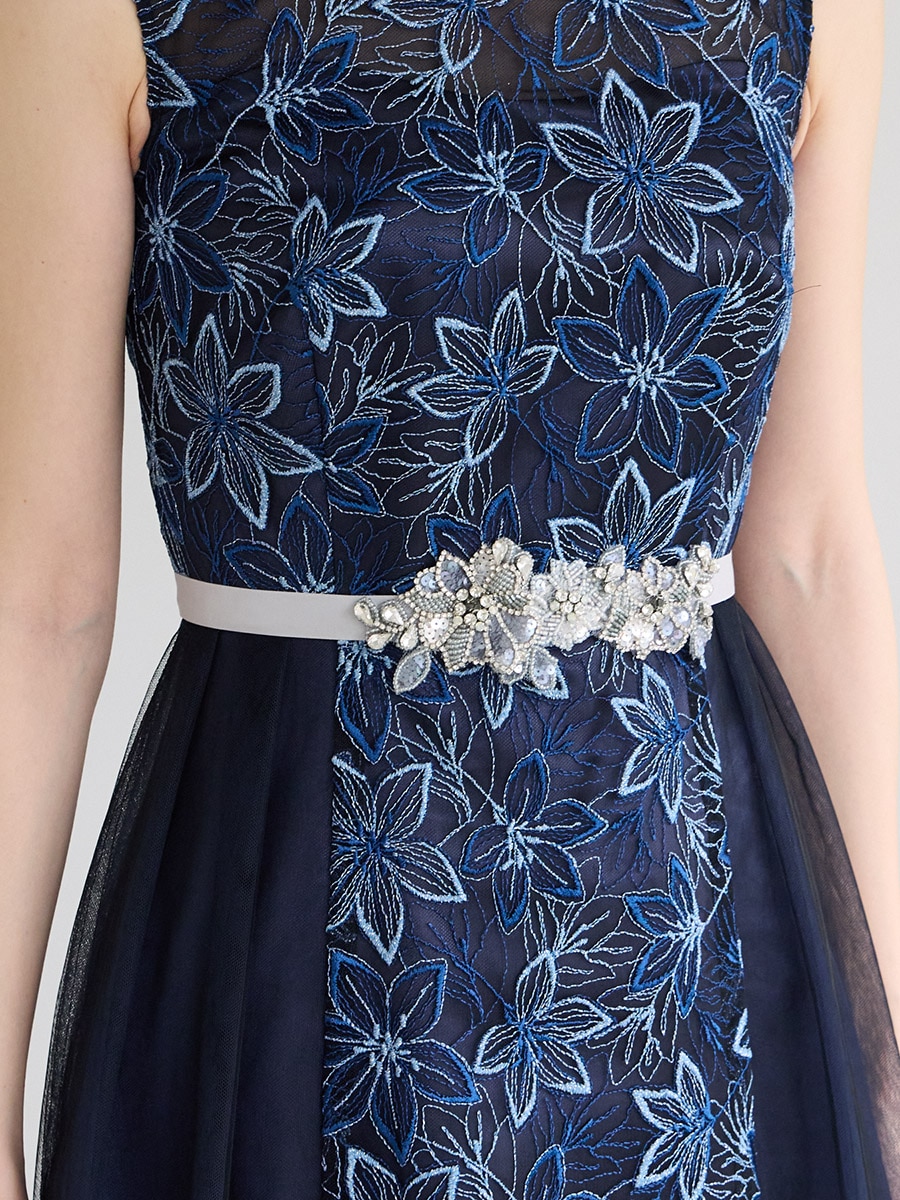 フラワーモチーフ×スパンコール&ビジュー刺繍サッシュベルト