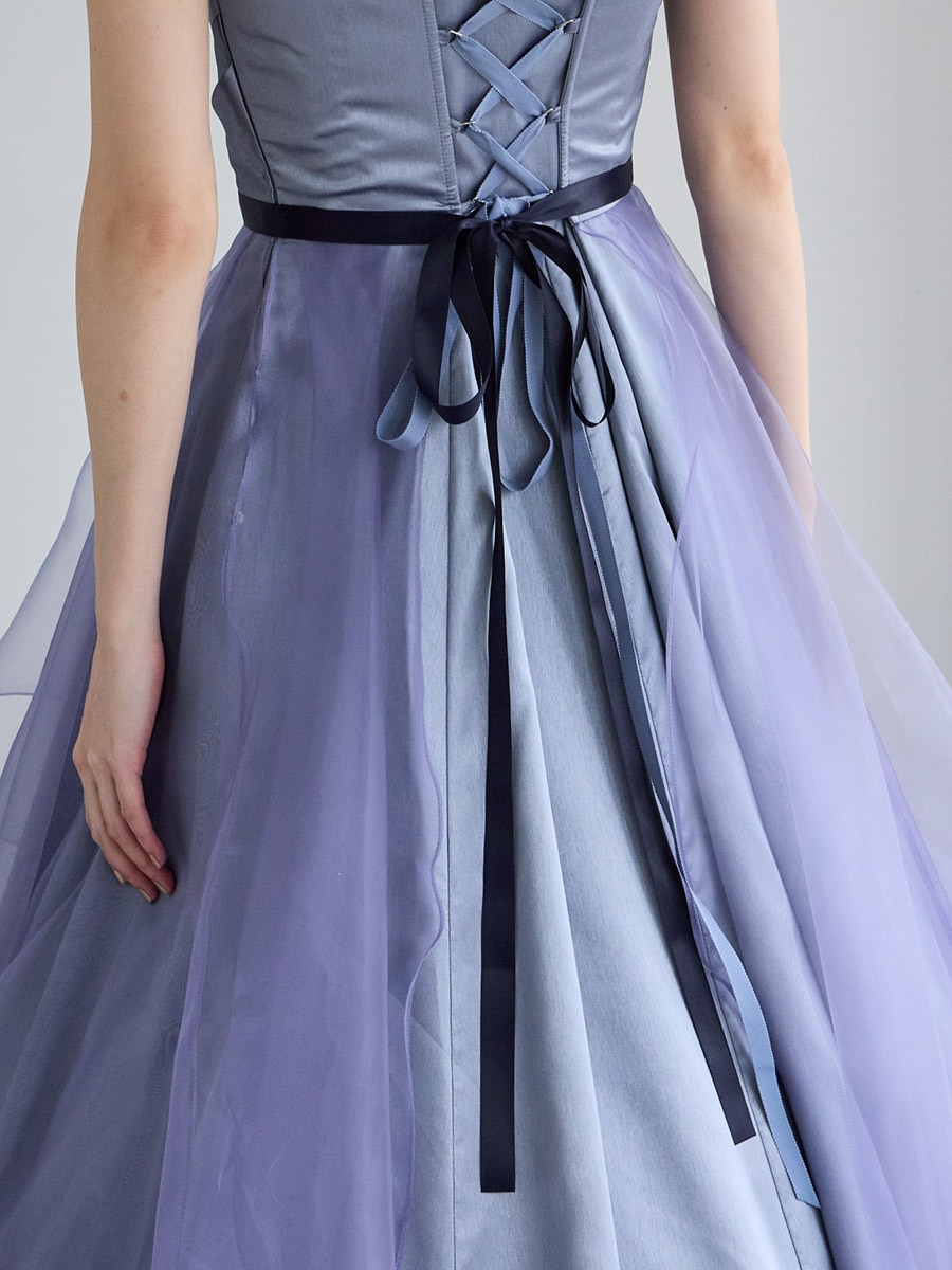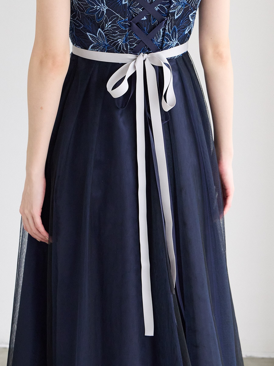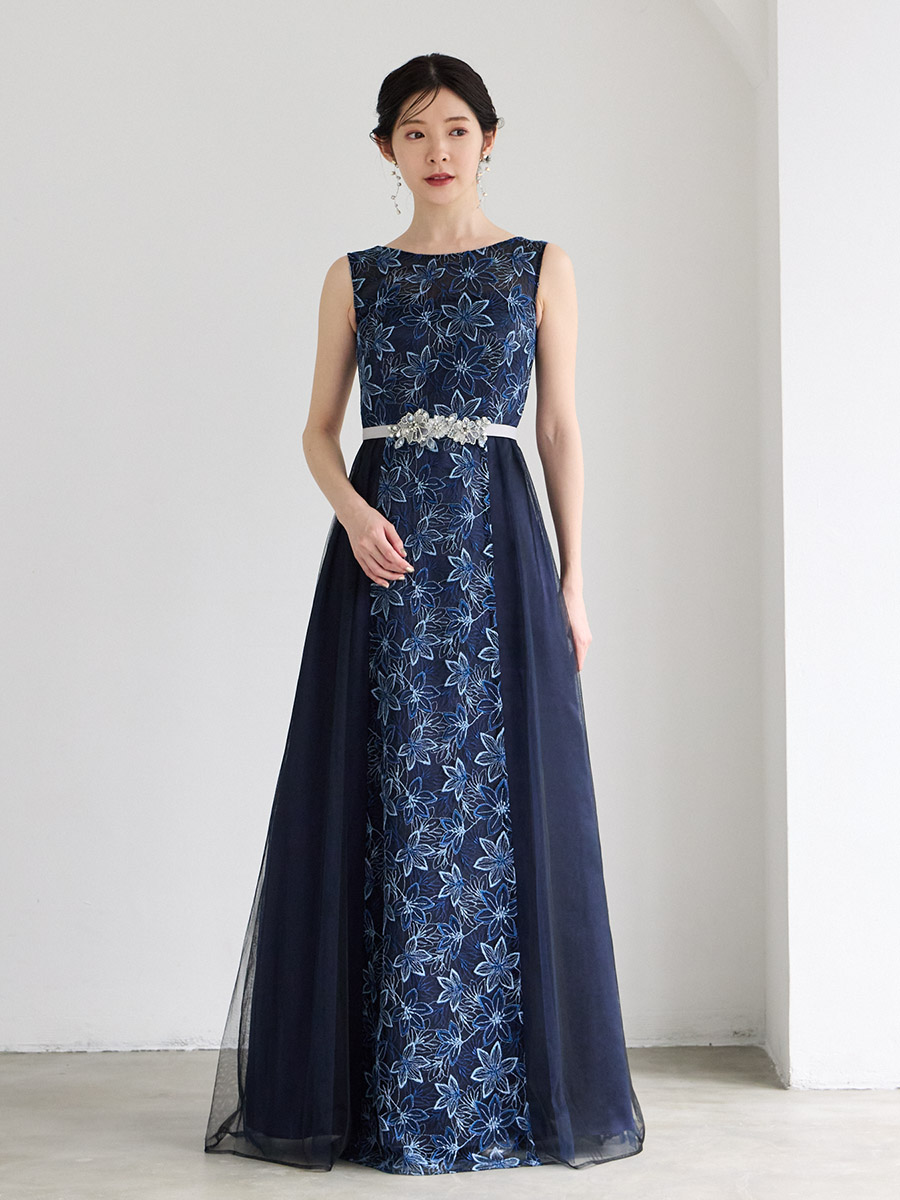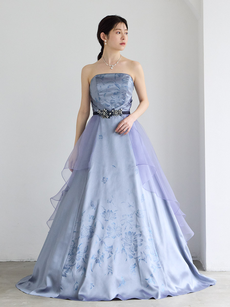 上品な色の組み合わせとフラワーモチーフが、ドレスのスタイリングに輝きをプラスします。