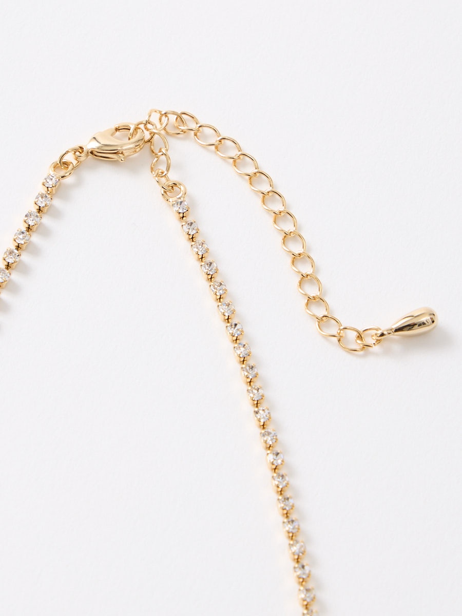 ラウンド型のストーンを連ねた、タッセルモチーフのネックレスです。