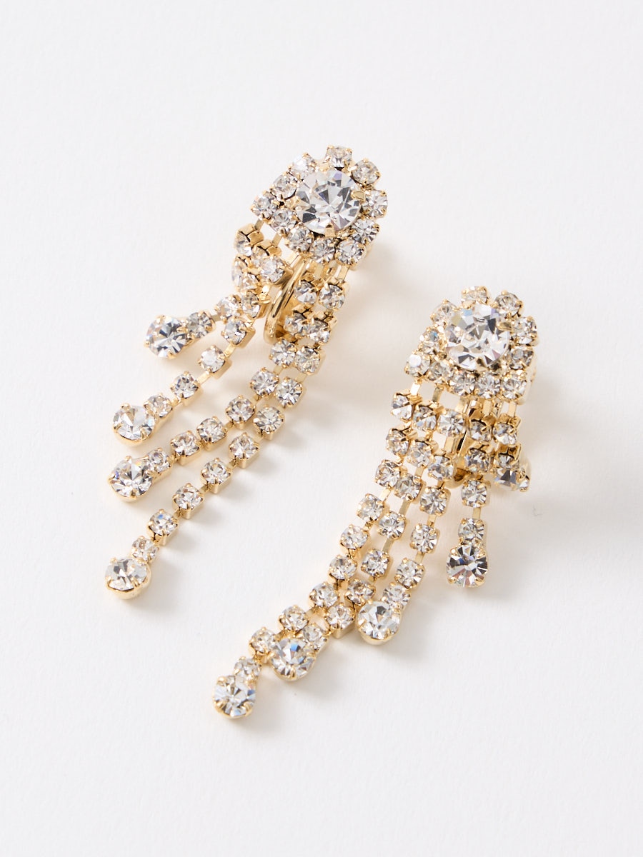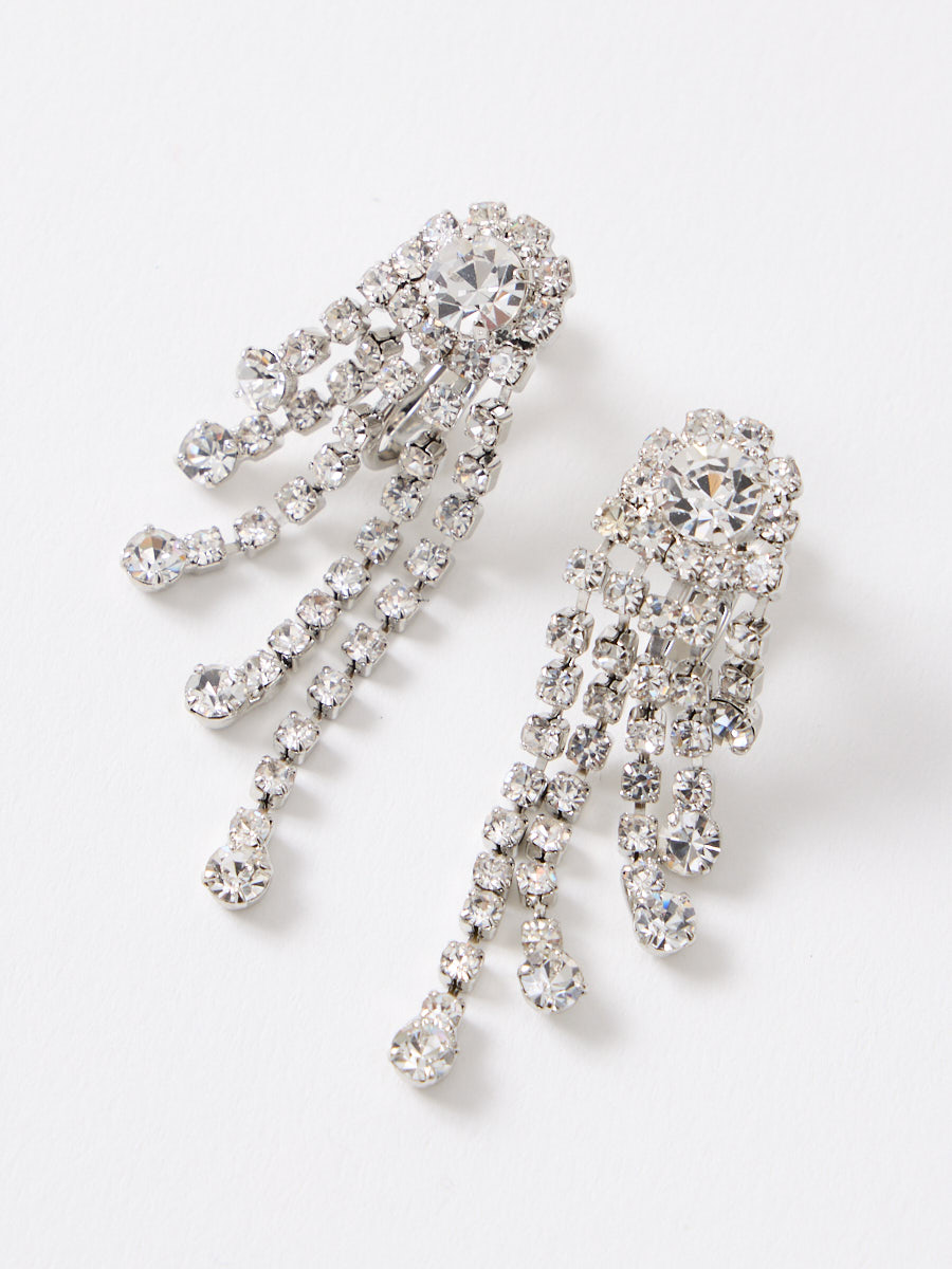 イヤリングも長さの違う連爪が垂れるため、ネックレス同様に揺れた際の煌めきが華やかなデザインです。