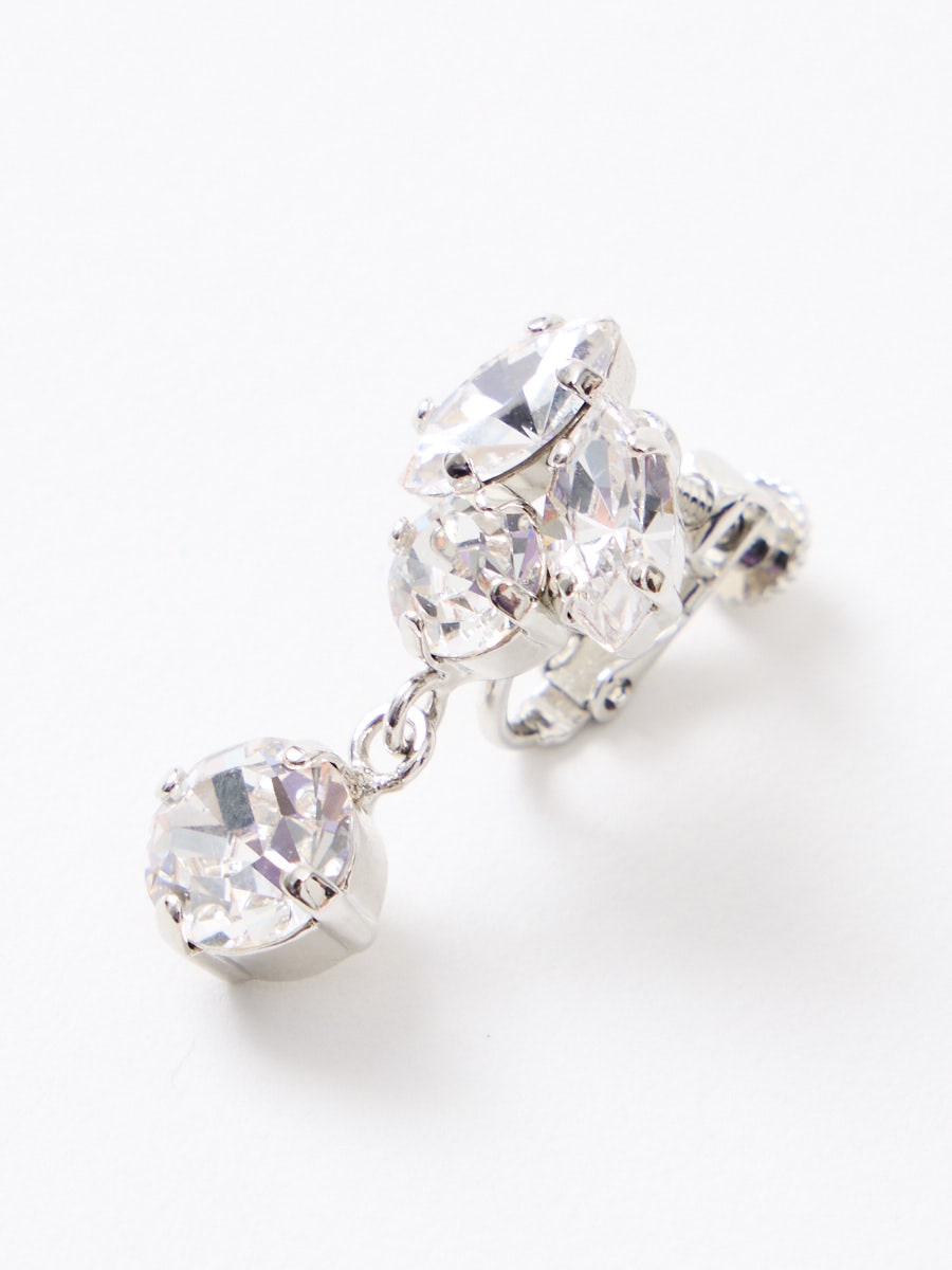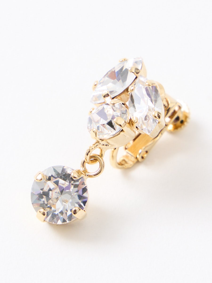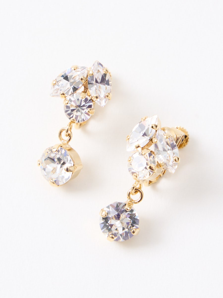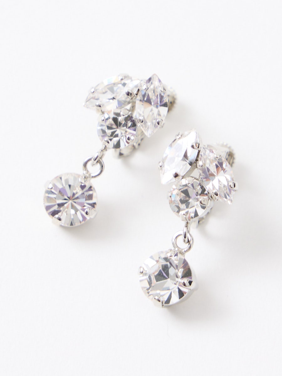 セットのイヤリングも同じく、マーキス・ラウンドの形のストーンを合わせ、細やかに揺れながらも軽くつけやすい大きさです。