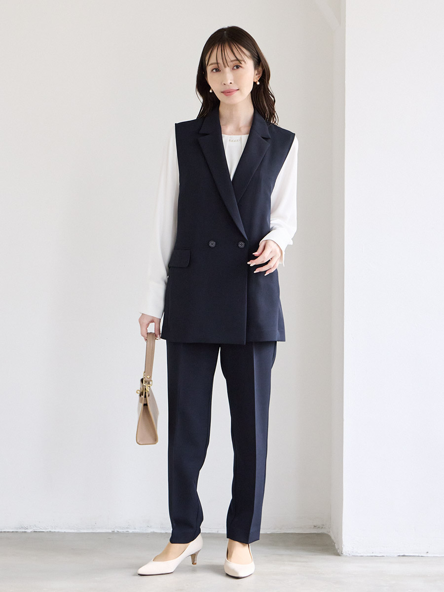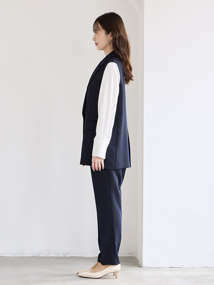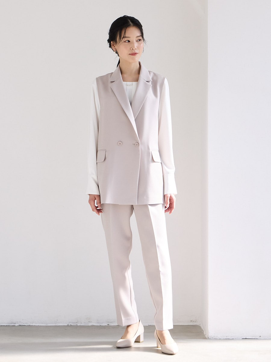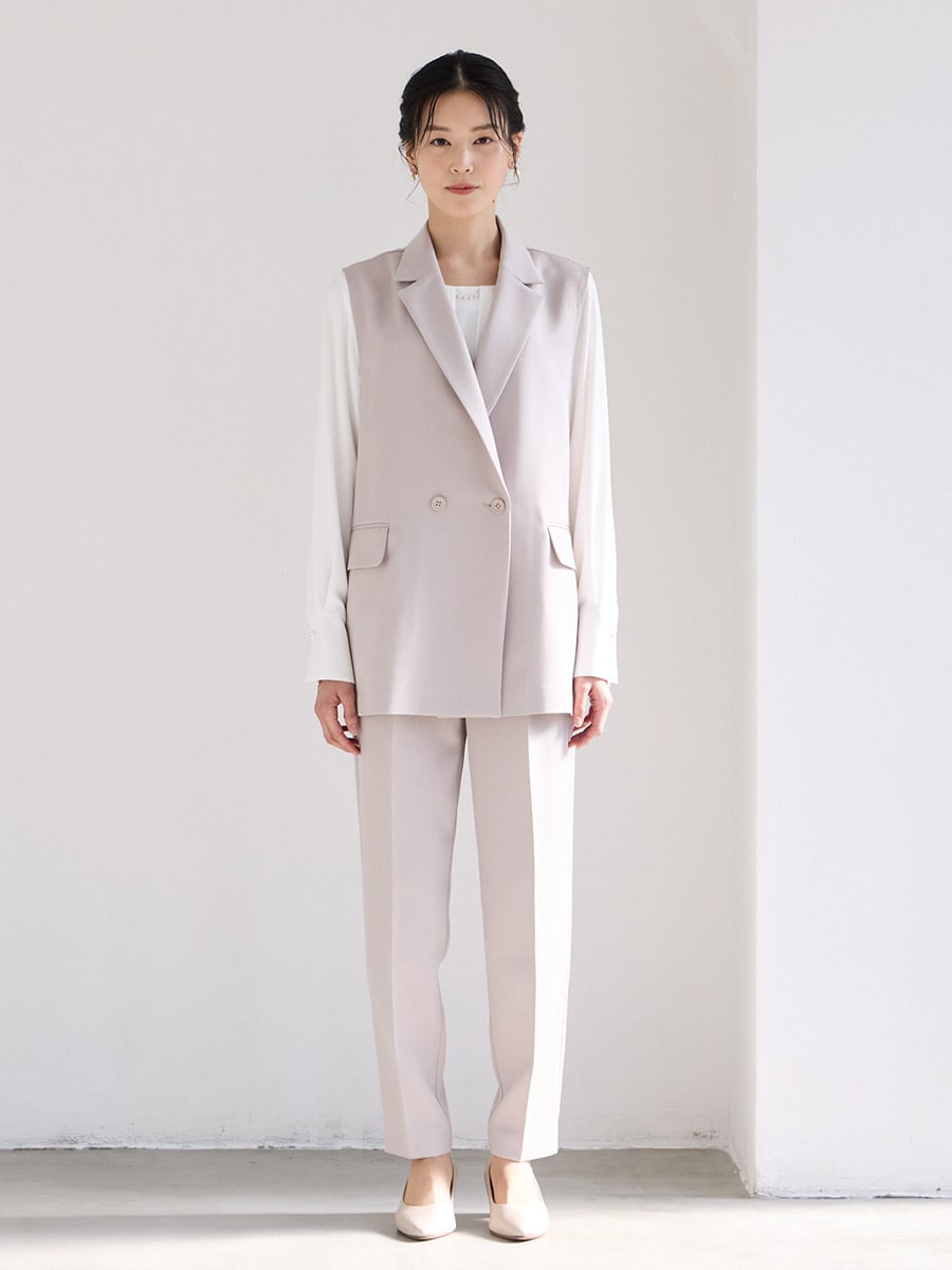 【WEB限定】ダブルボタンジレ・胸元タックブラウス・テーパードパンツ 3点セットフォーマルセットアップ
