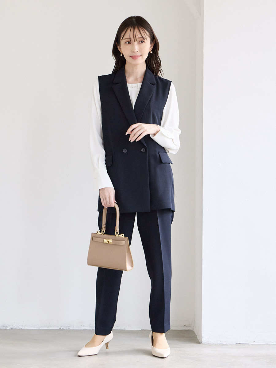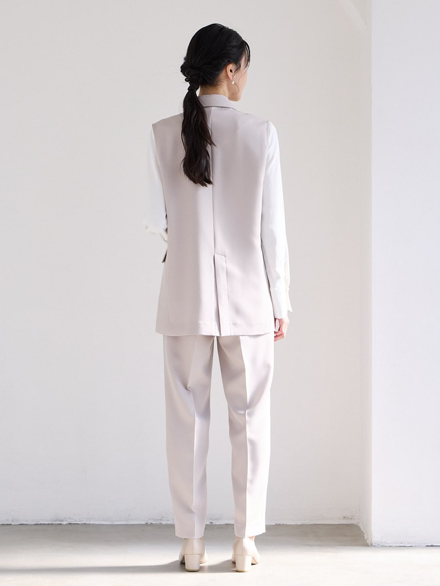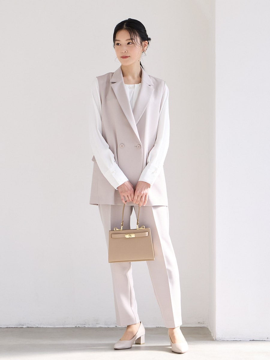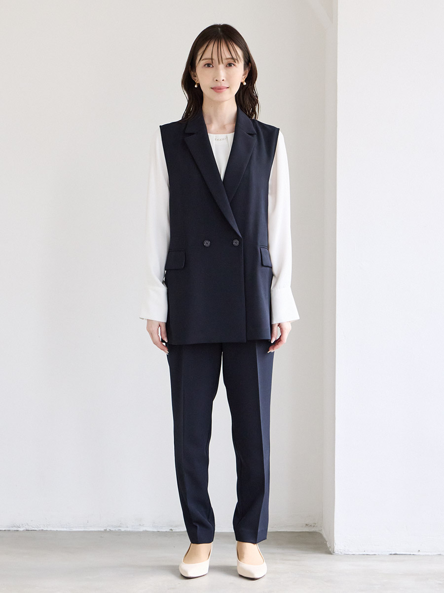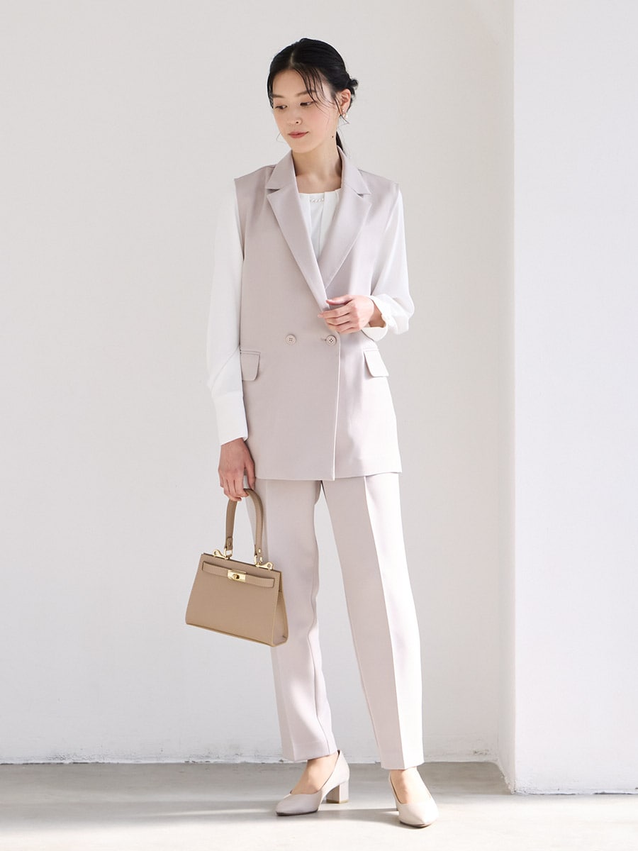 【WEB限定】ダブルボタンジレ・胸元タックブラウス・テーパードパンツ 3点セットフォーマルセットアップ