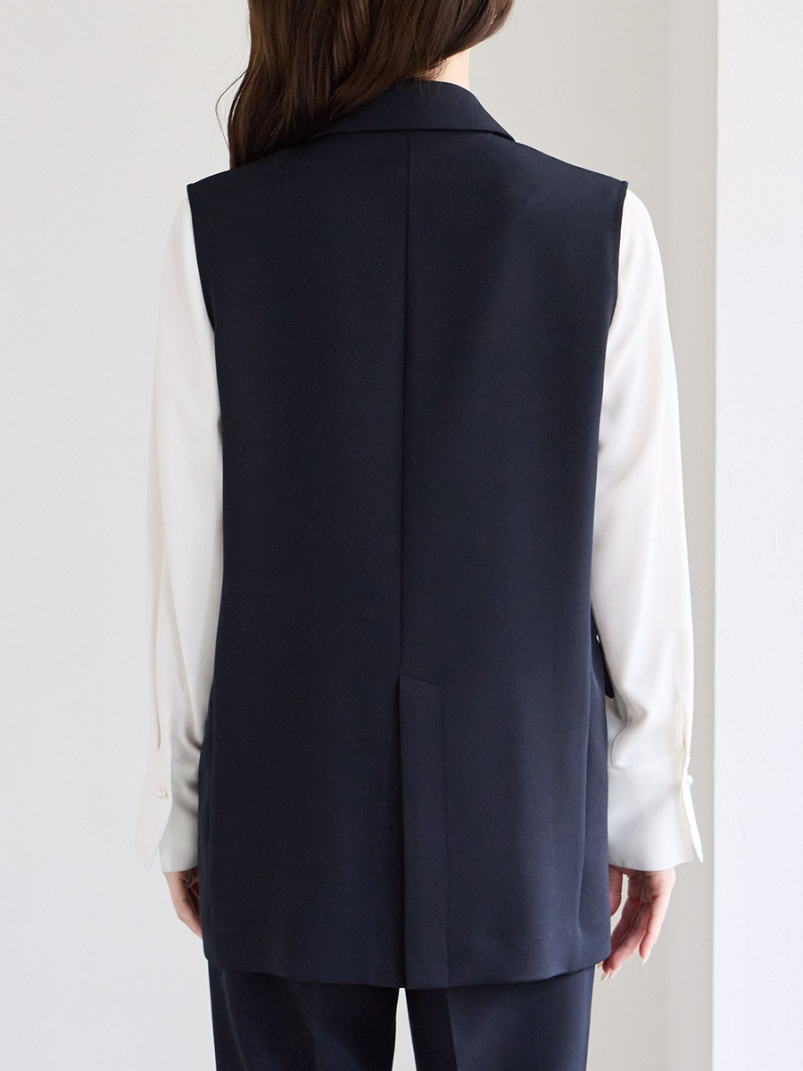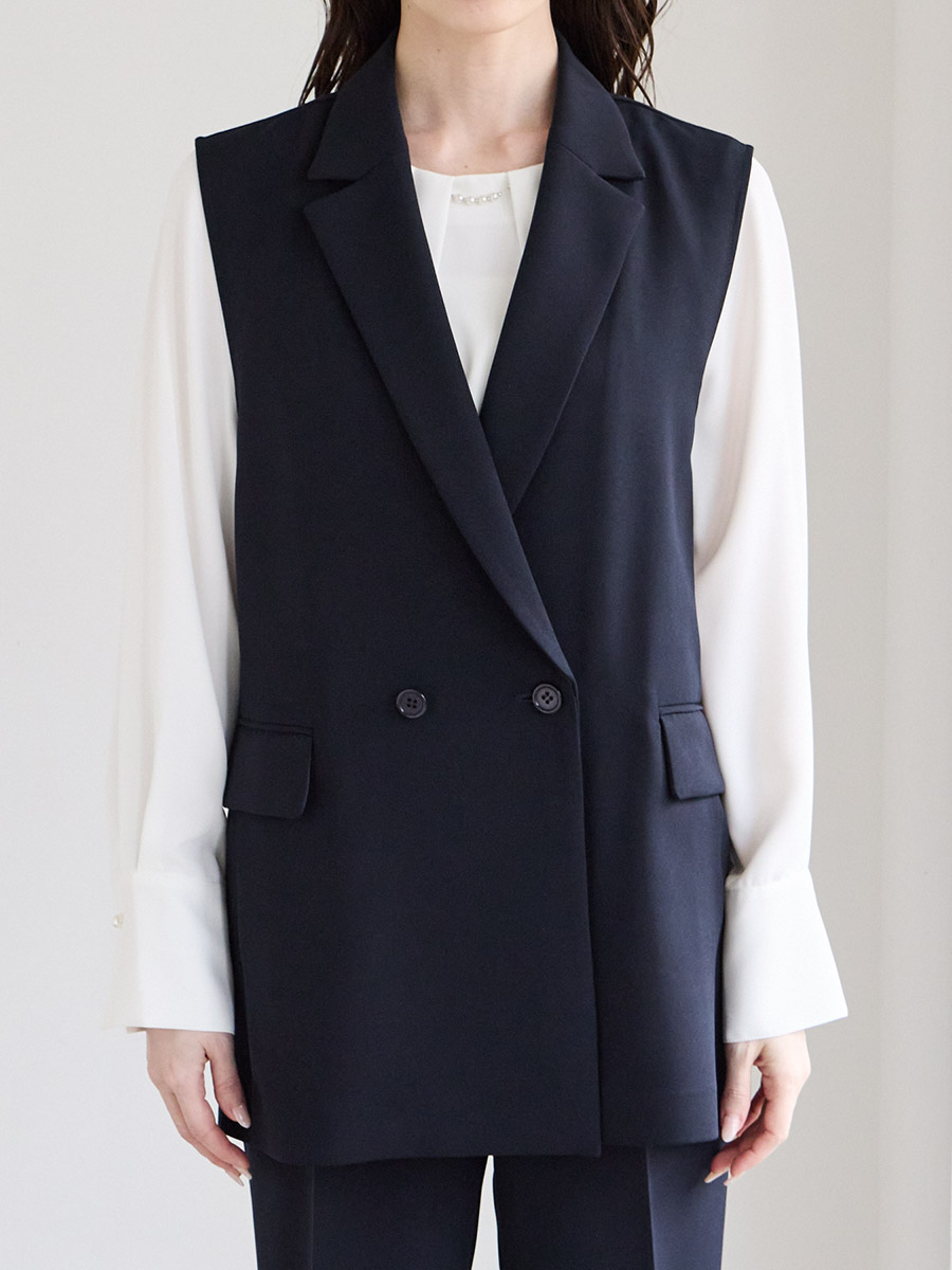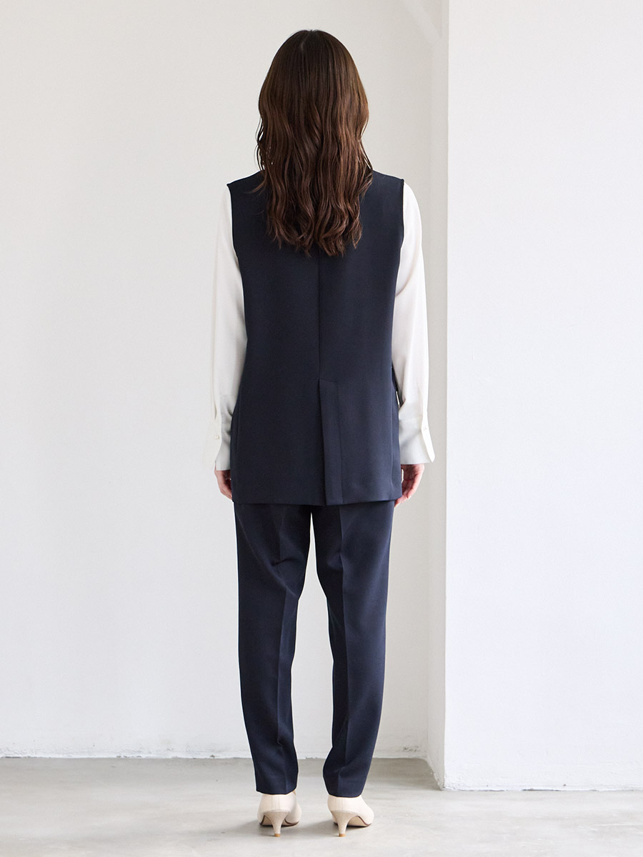 ジレ・パンツはストレッチのあるダブルクロス、ブラウスは肌触りの良いソフトデシンを使用