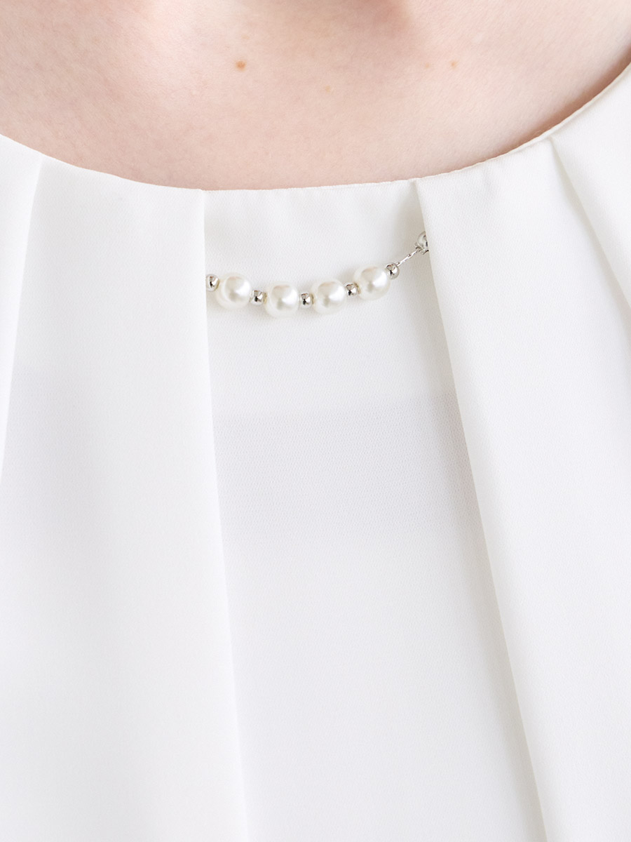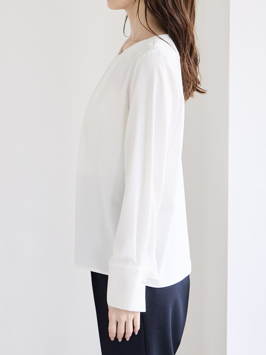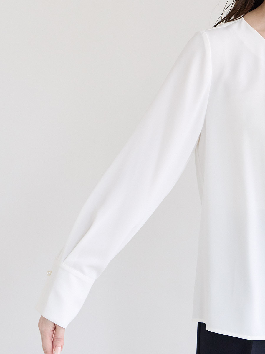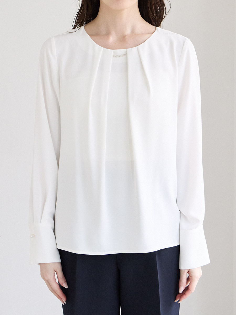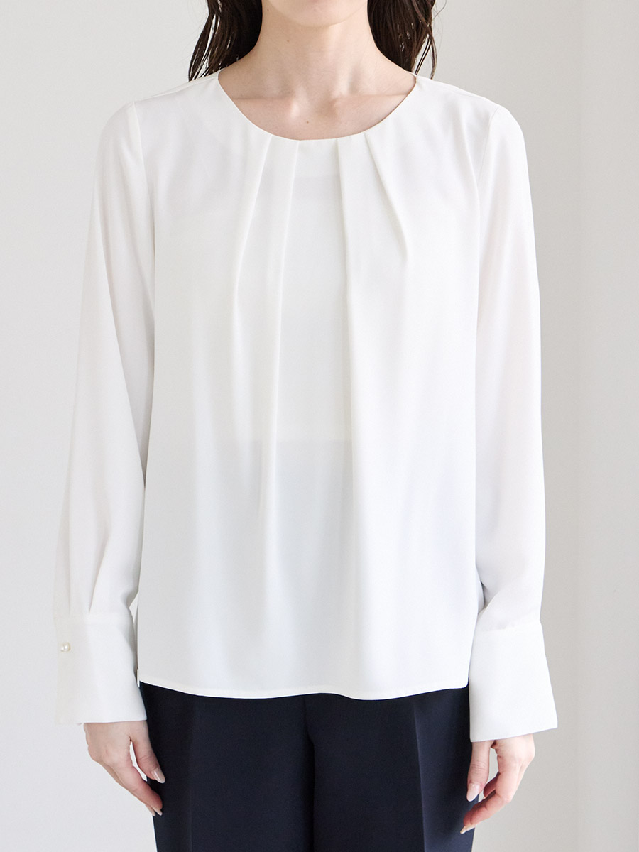 ・胸元にタックを入れたシンプルなブラウス