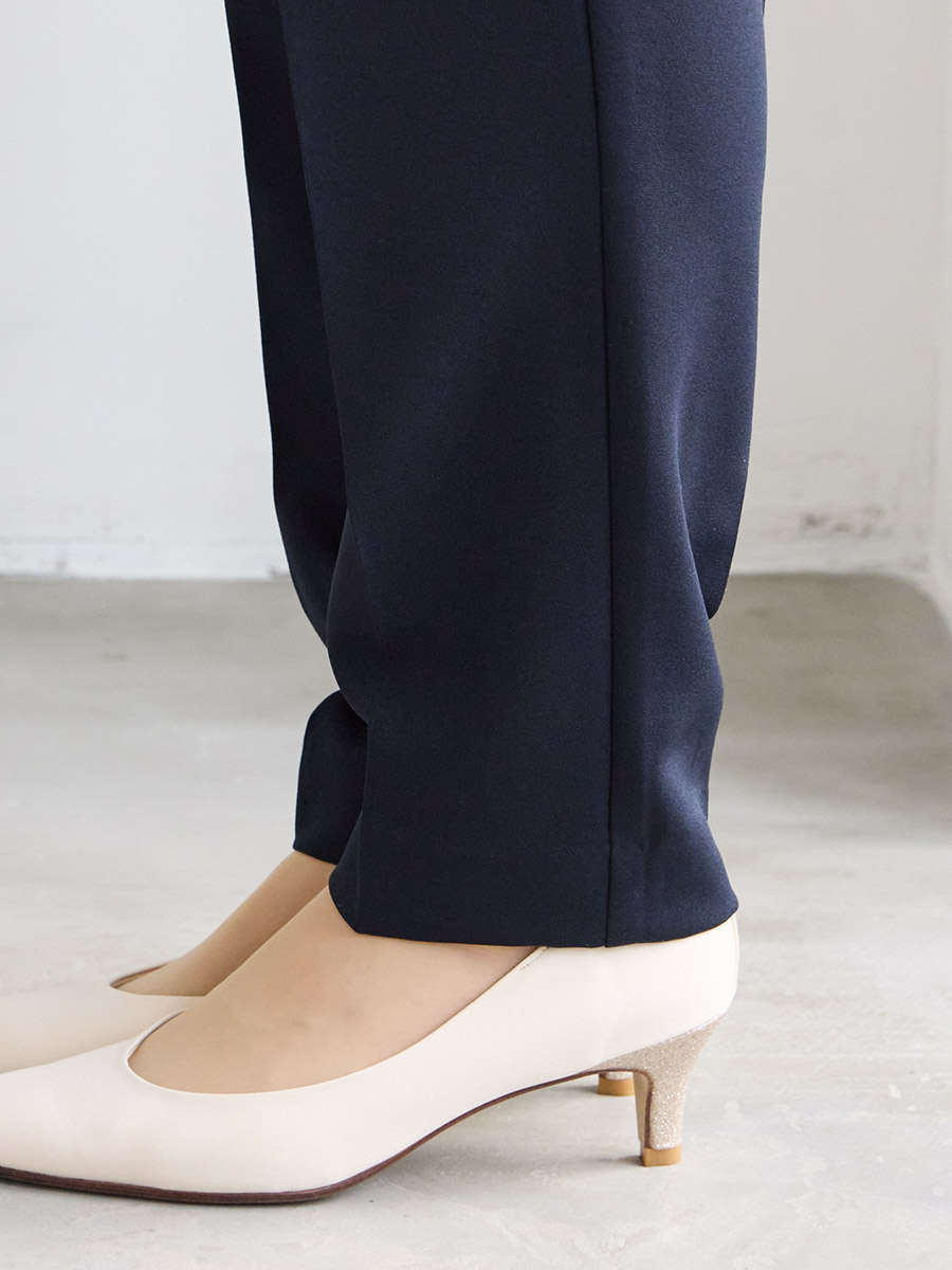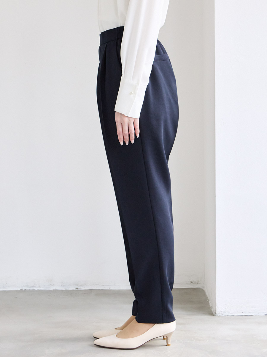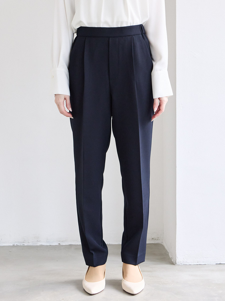 ・センタープレス入りの美脚シルエットのテーパードパンツ