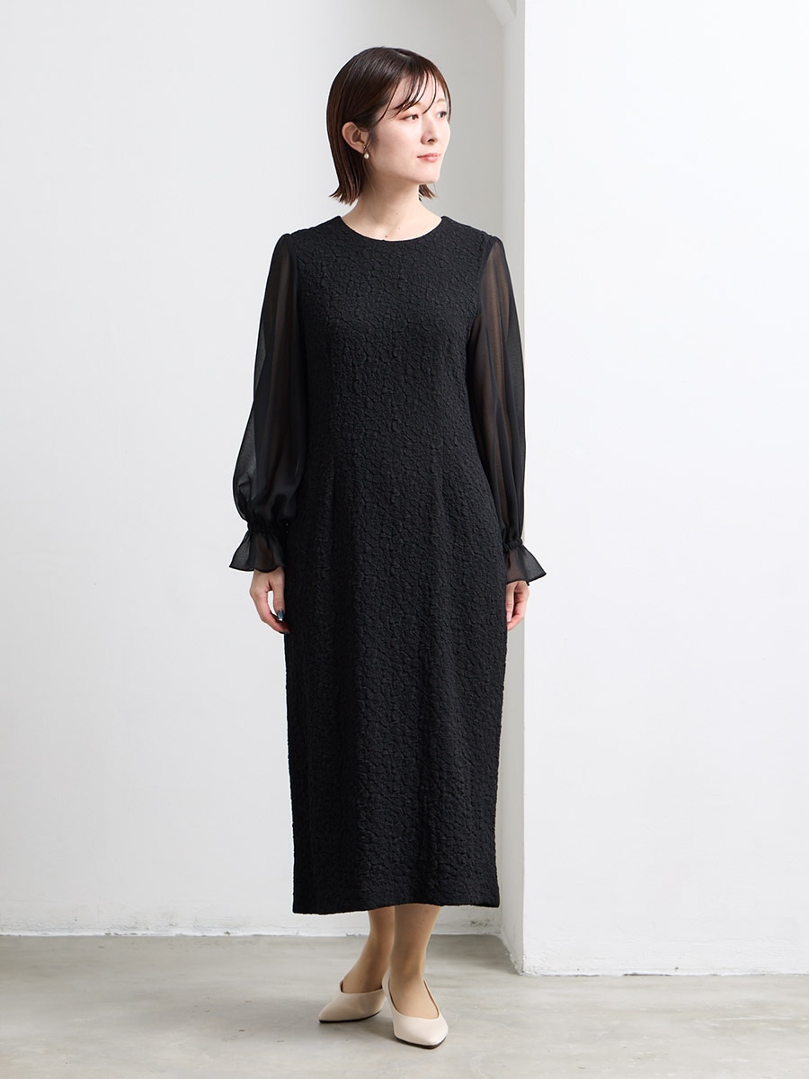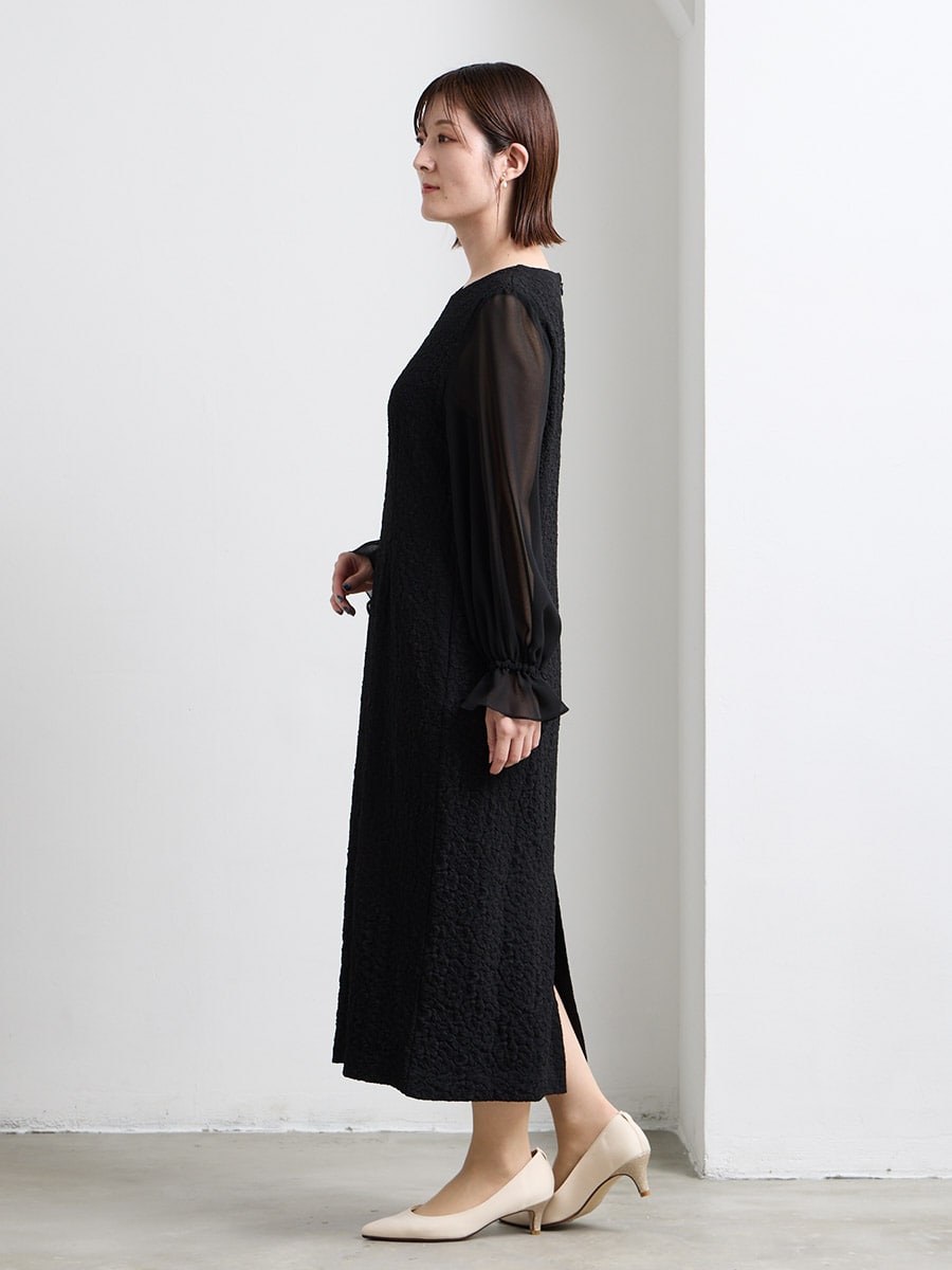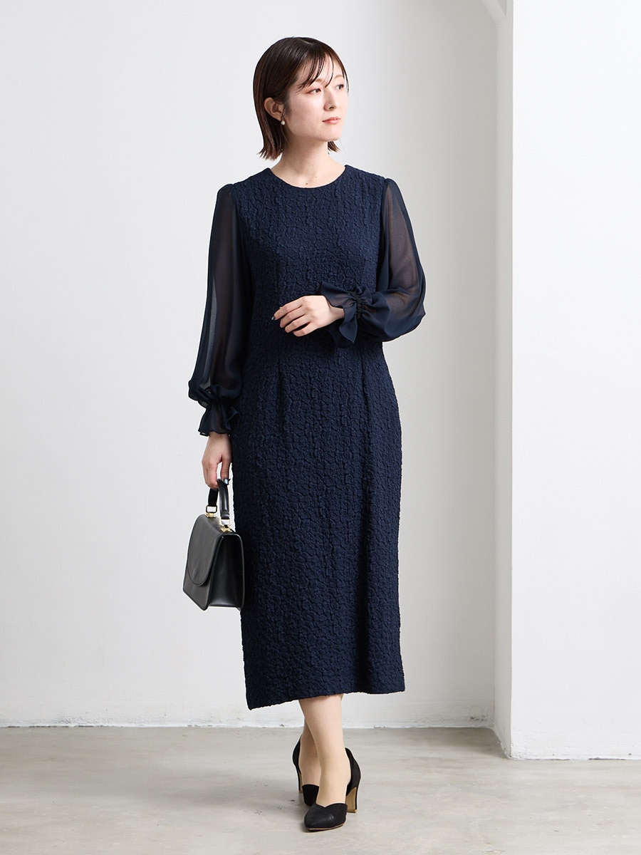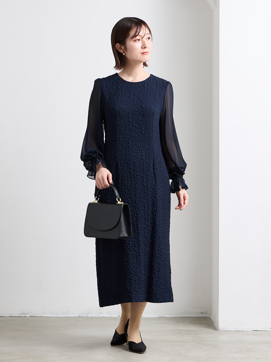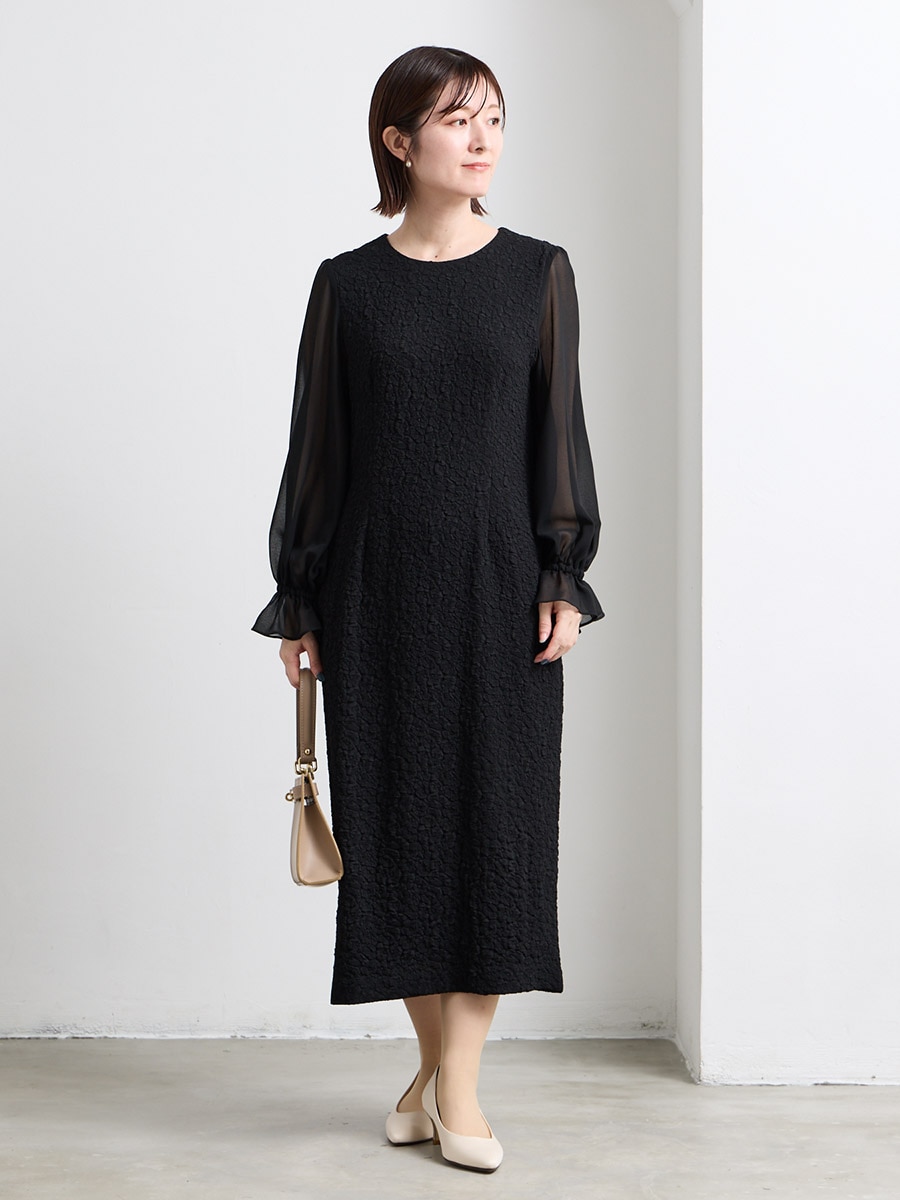 表面感のあるふくれジャガードが上品シックなワンピース。