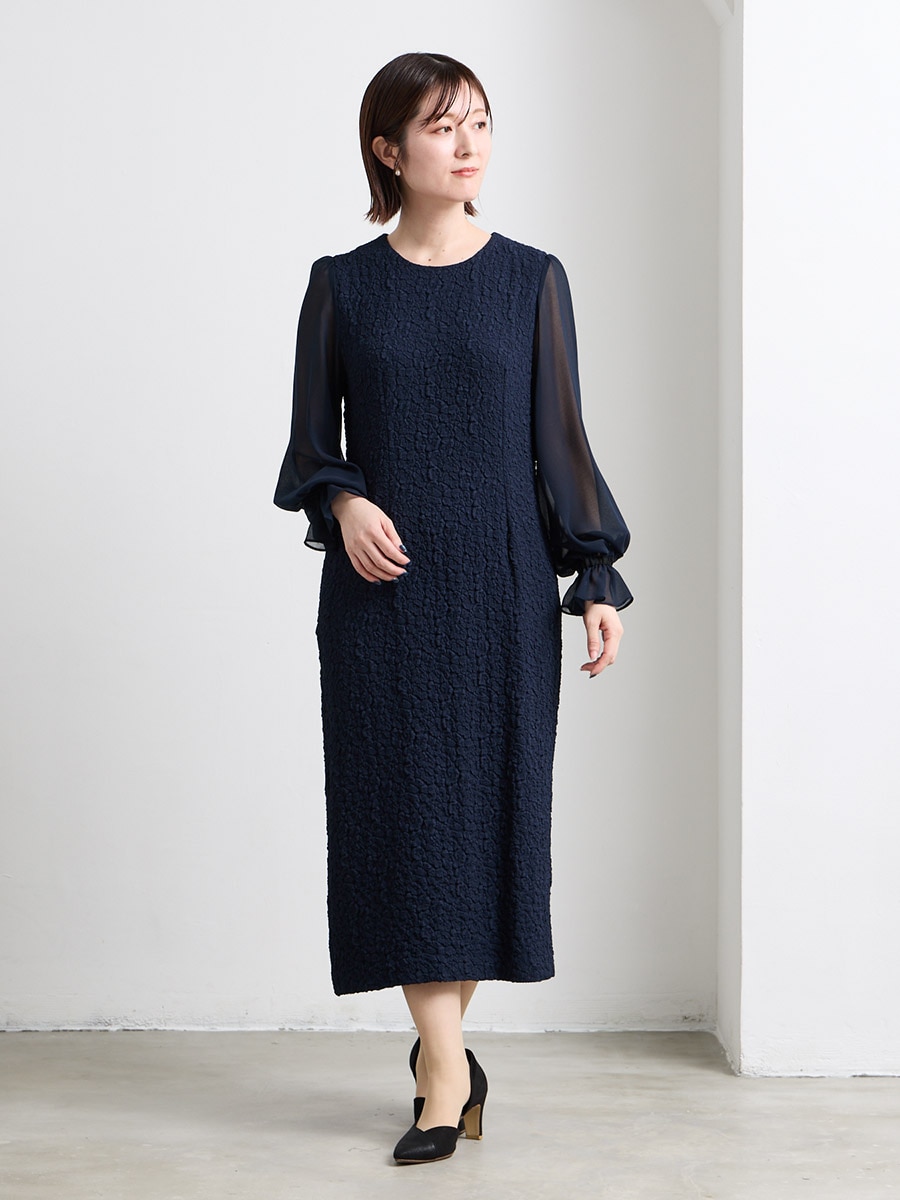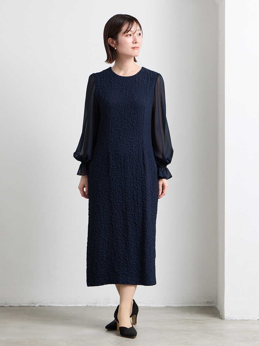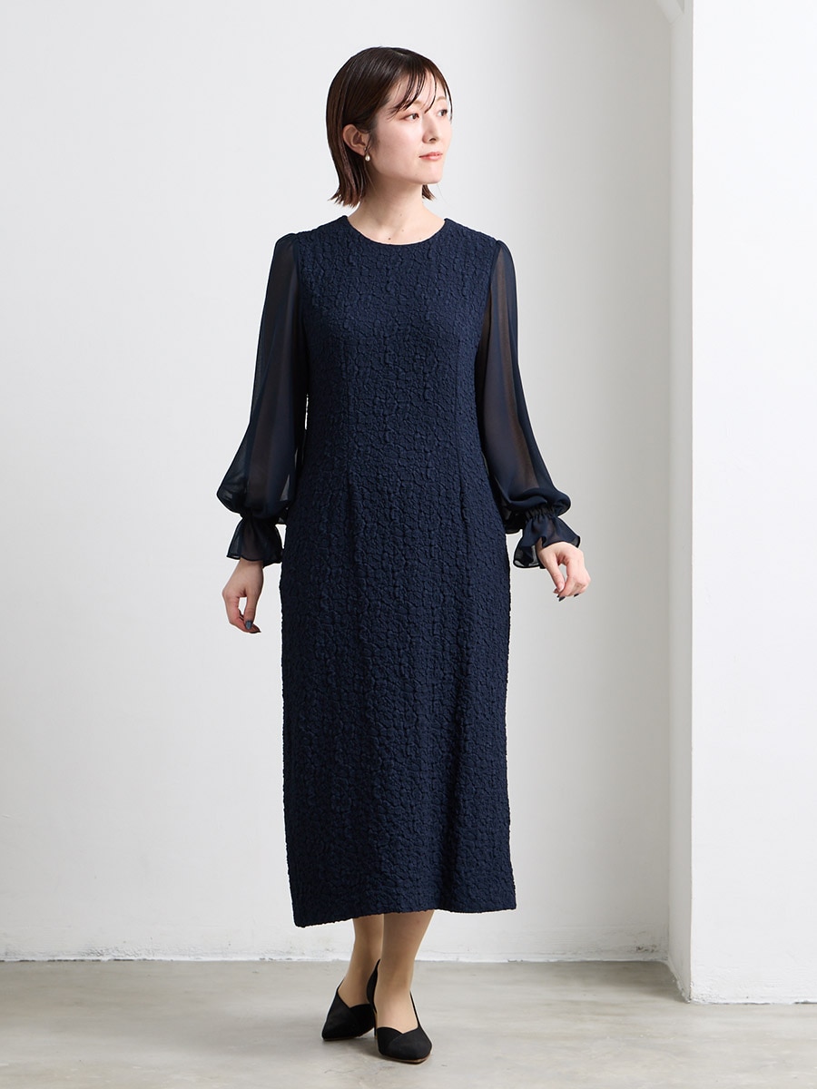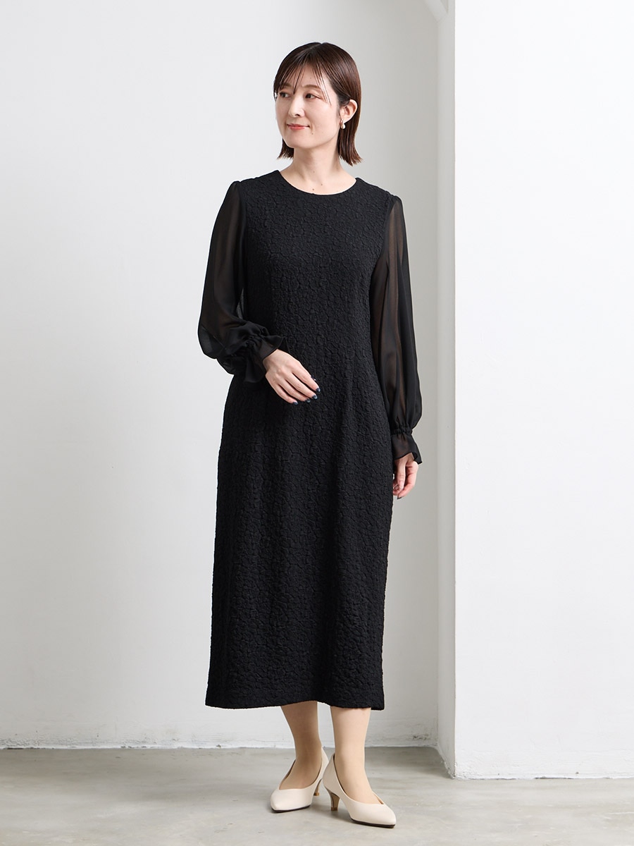表面感のあるふくれジャガードが上品シックなワンピース。
