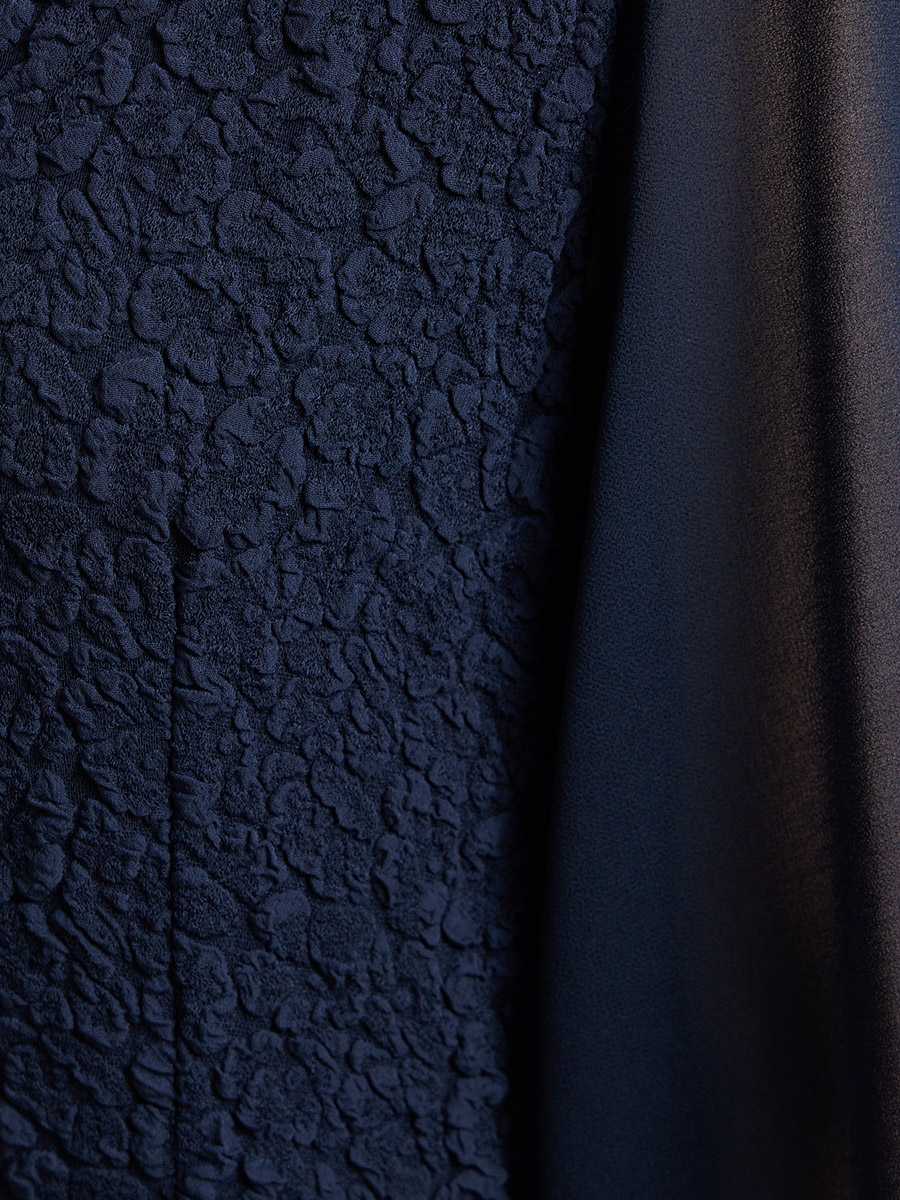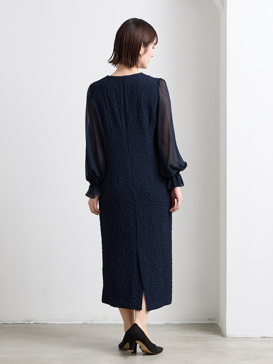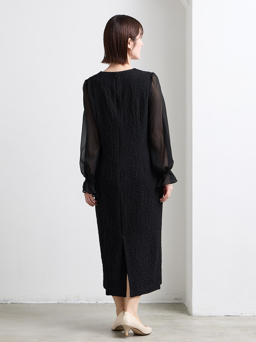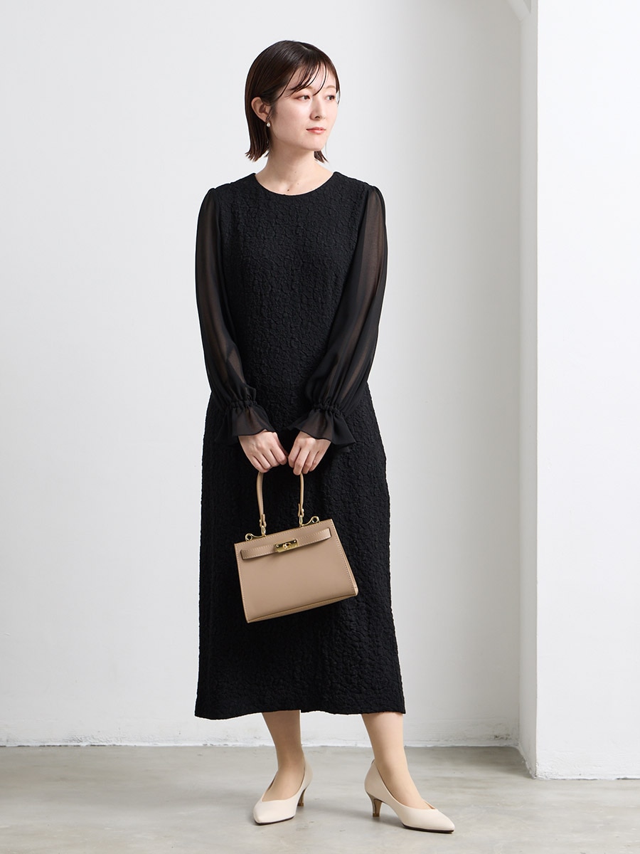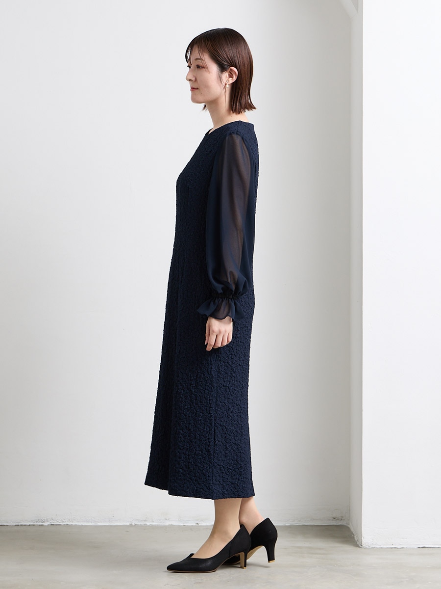 表面感のあるふくれジャガードが上品シックなワンピース。
