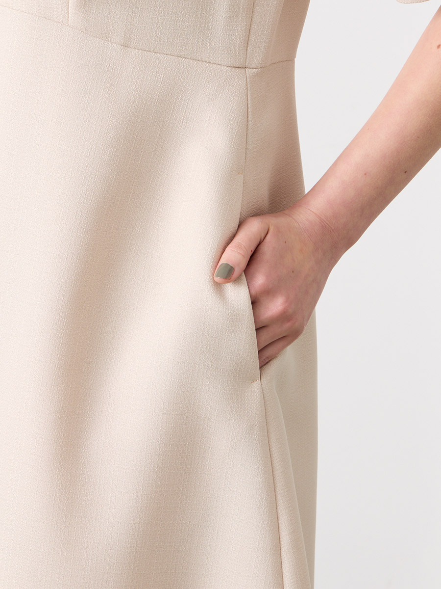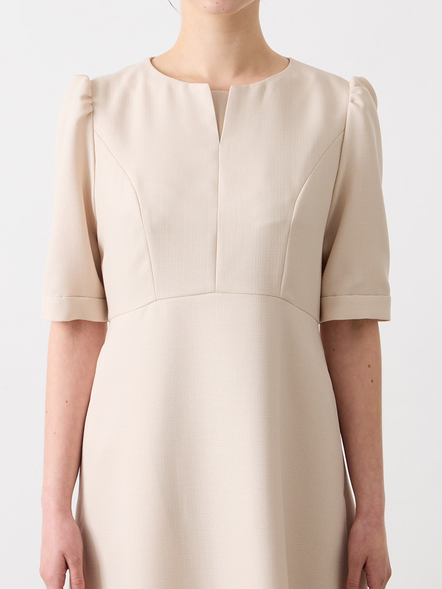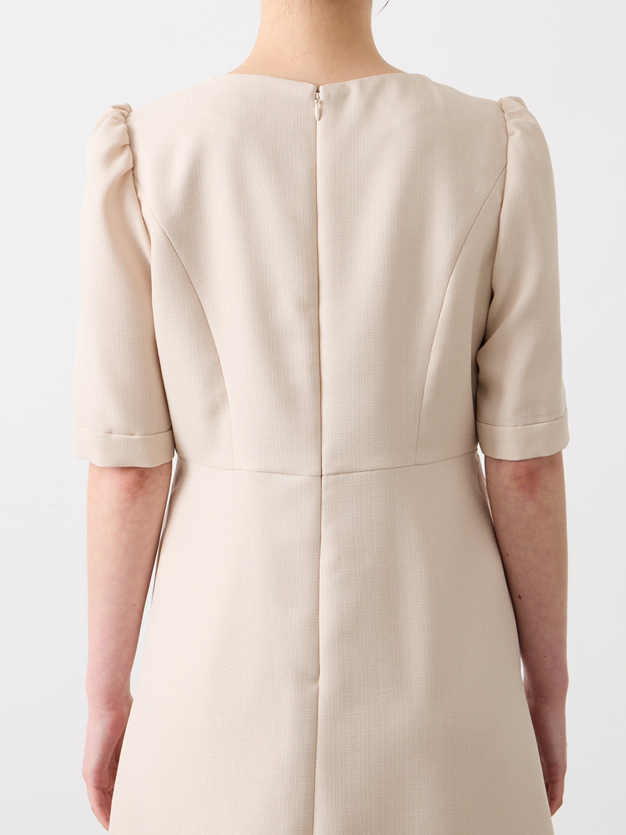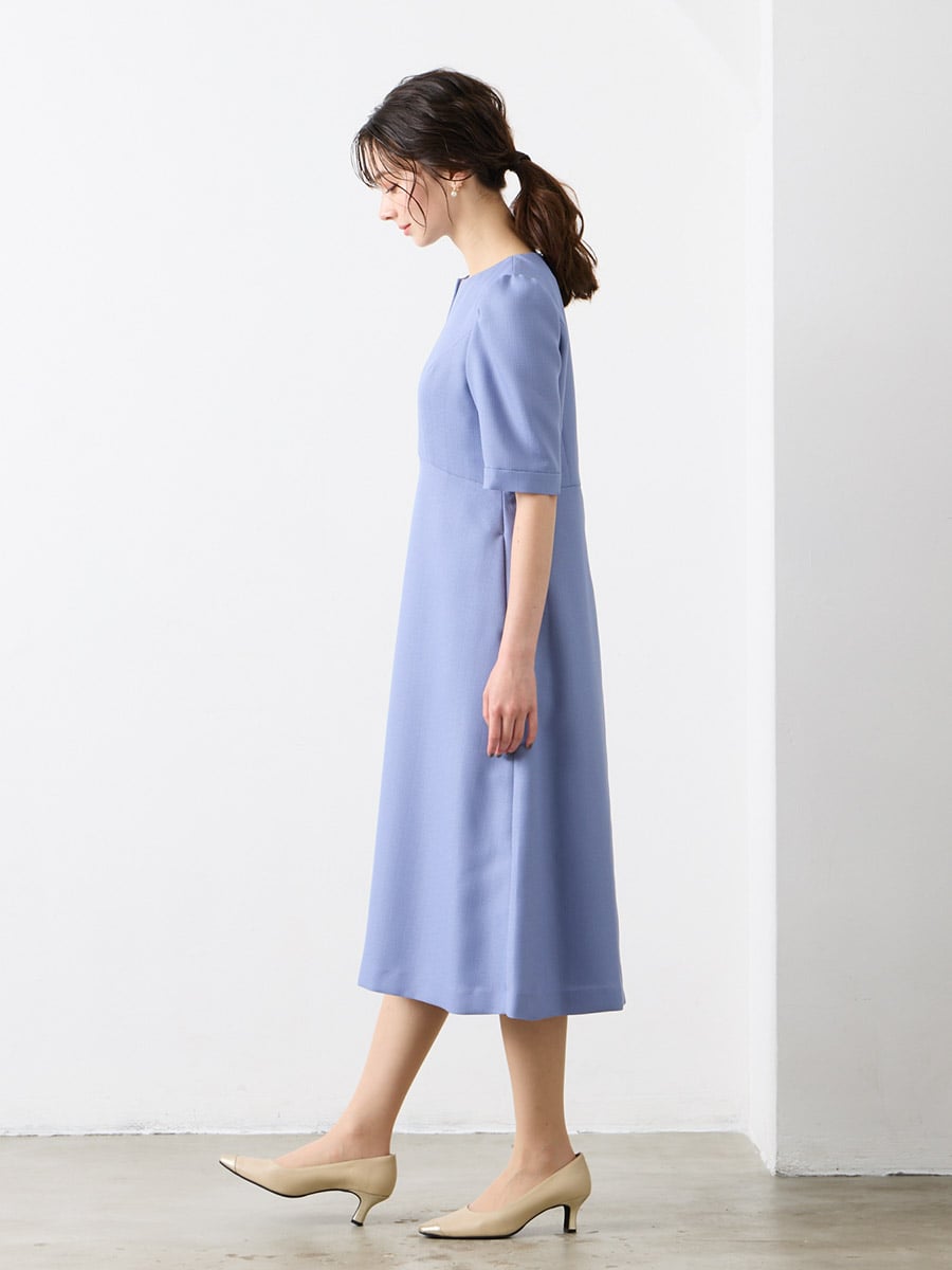 繊細な表面変化のあるブッチャー素材を使用した、上品な印象のワンピース。