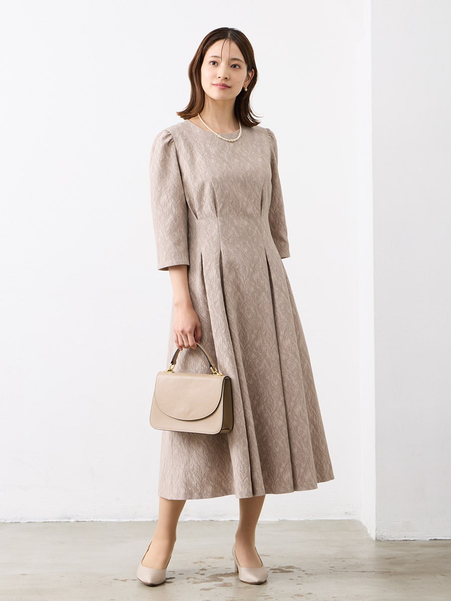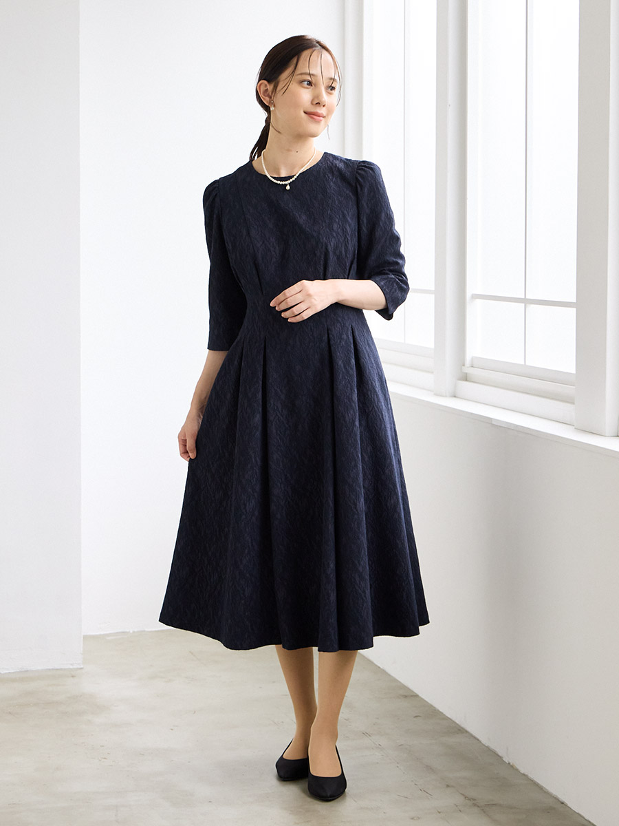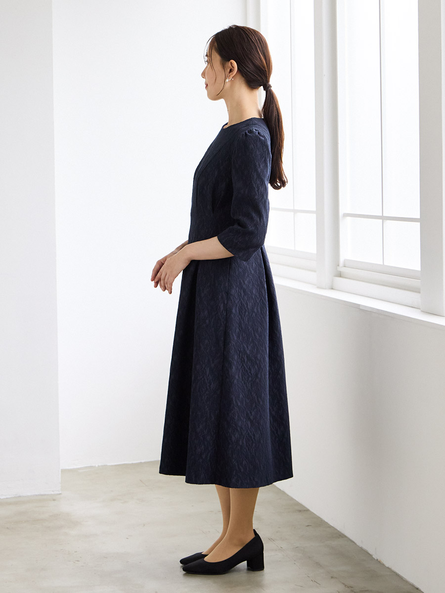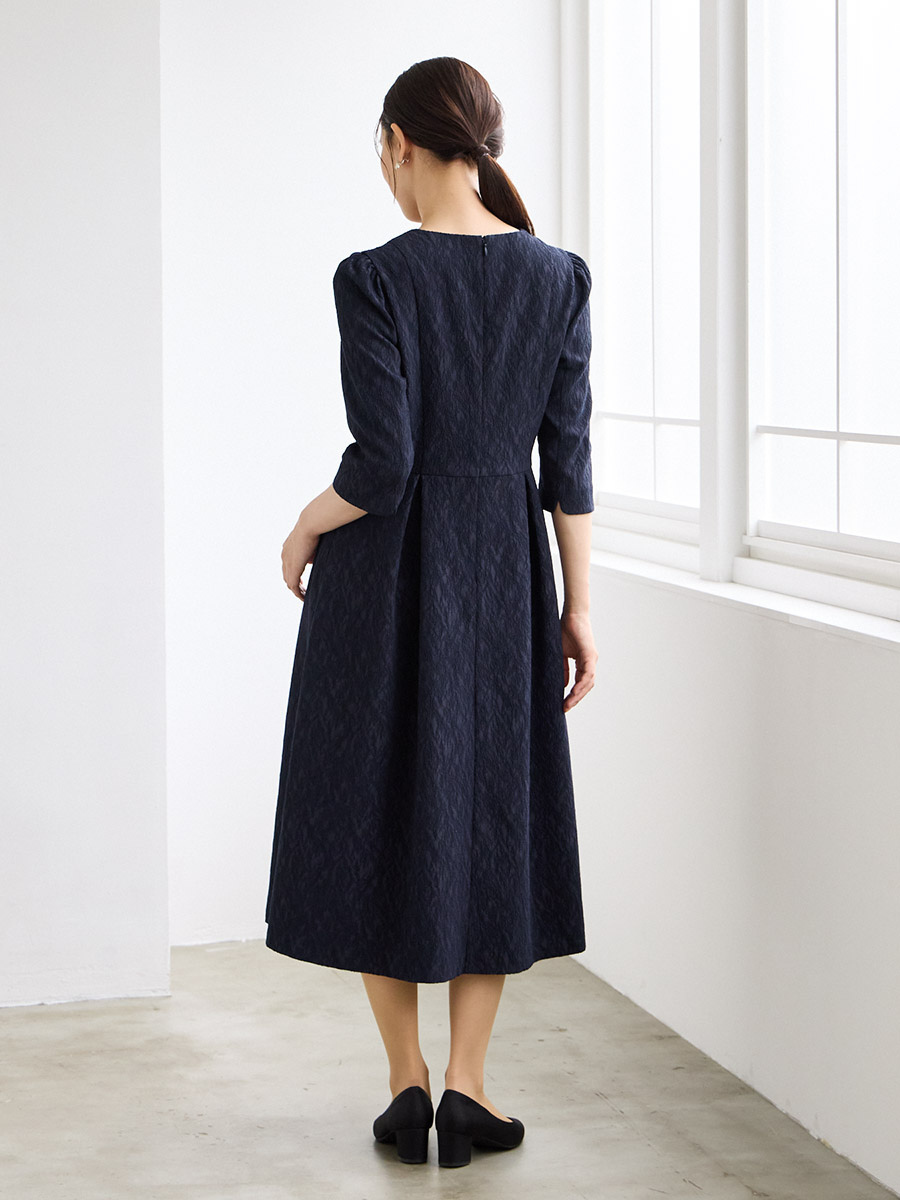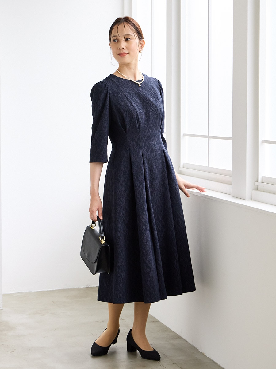 フェミニンなニュアンスを添えたジャカード素材のフィット&フレアワンピース
