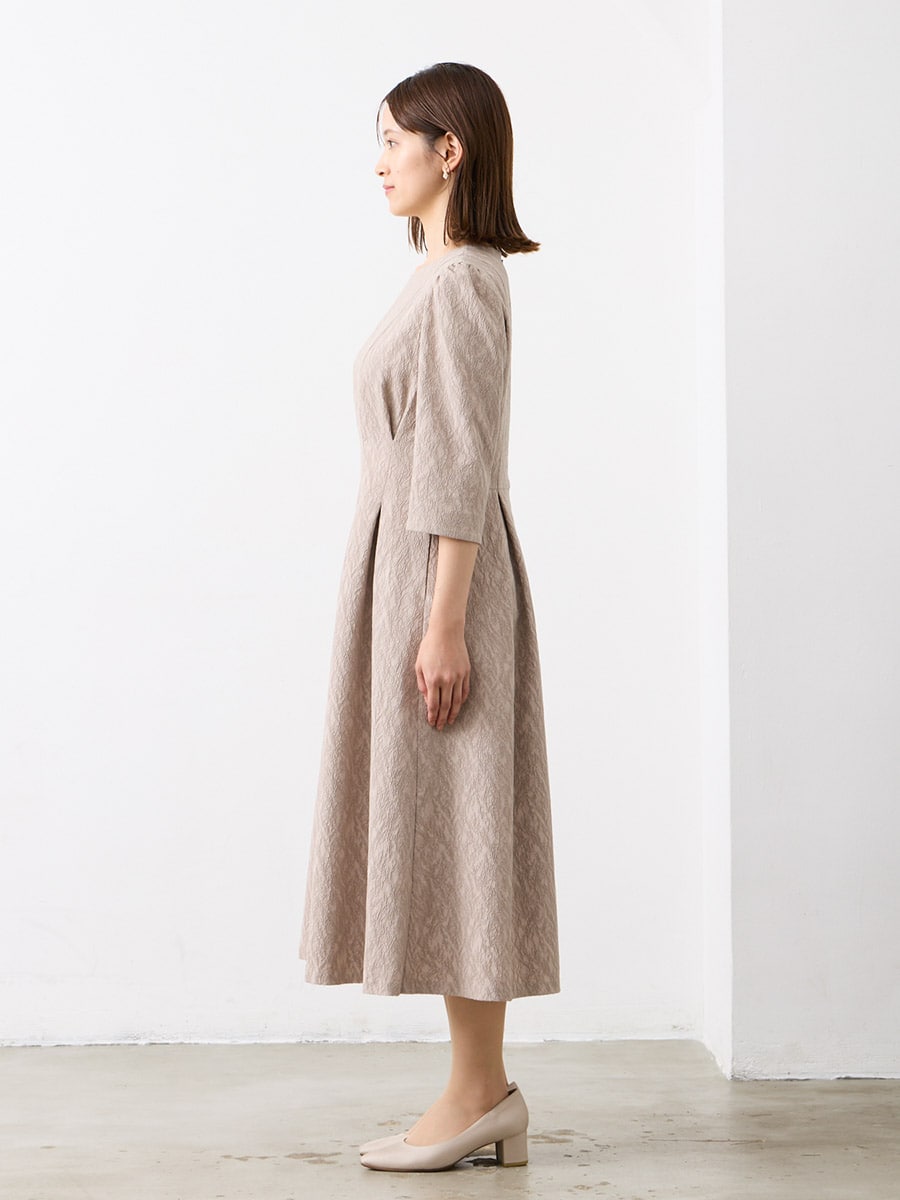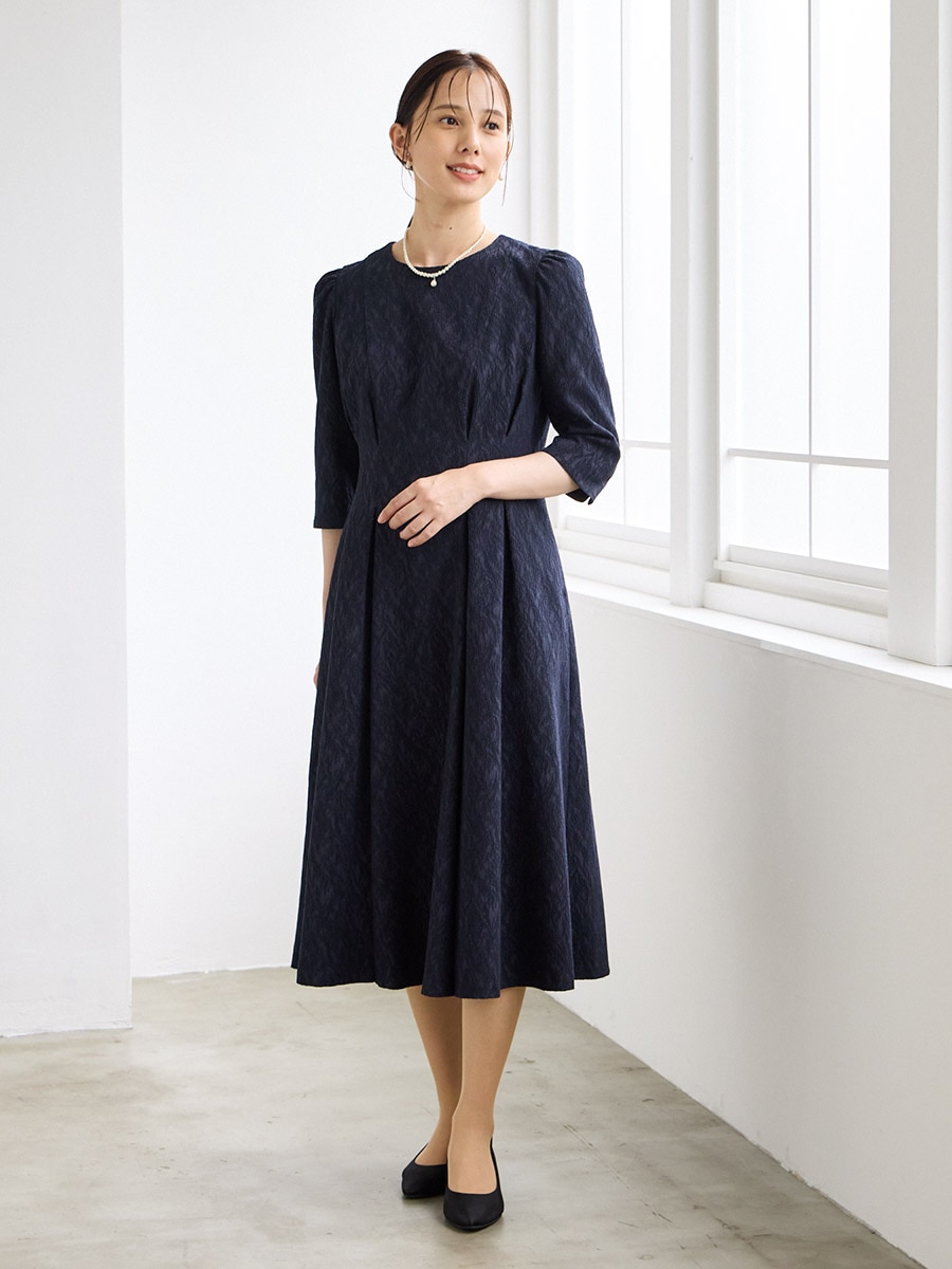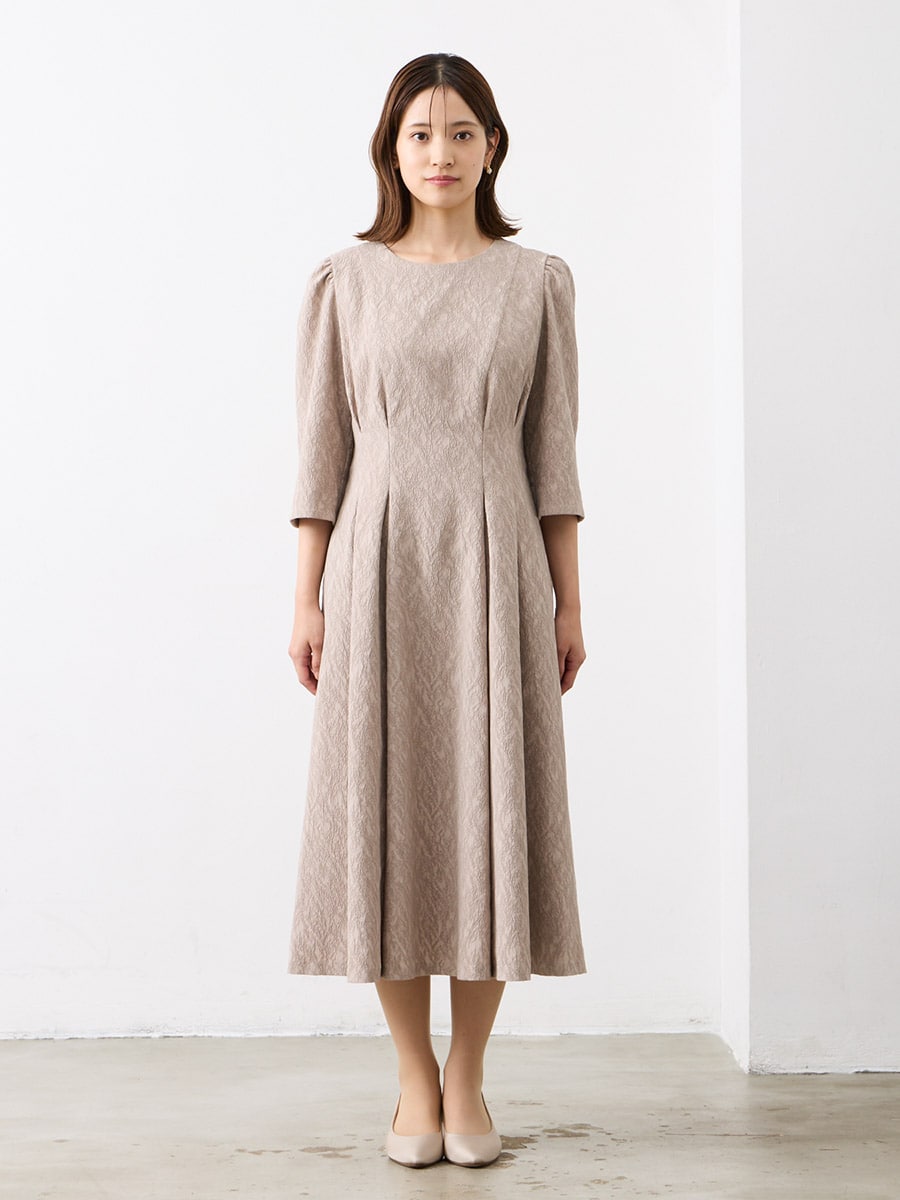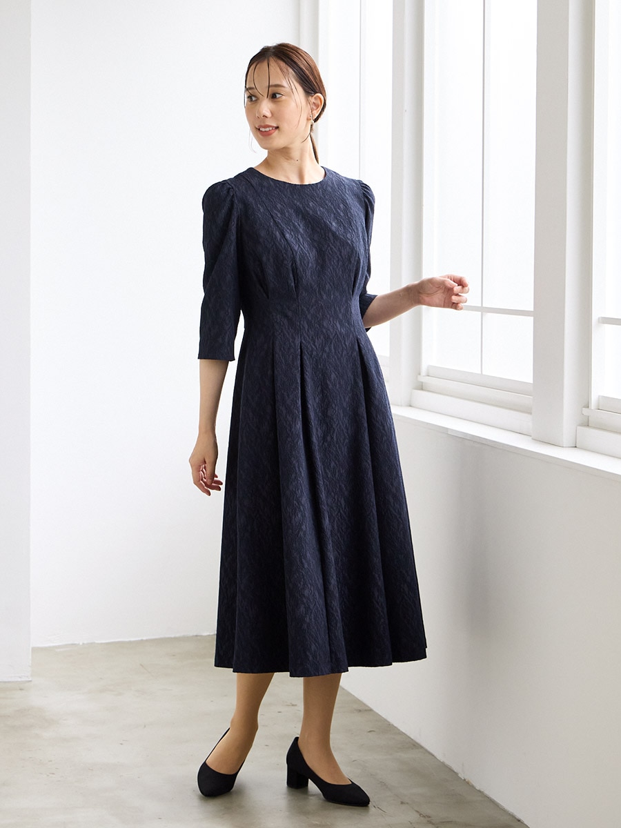 フェミニンなニュアンスを添えたジャカード素材のフィット&フレアワンピース