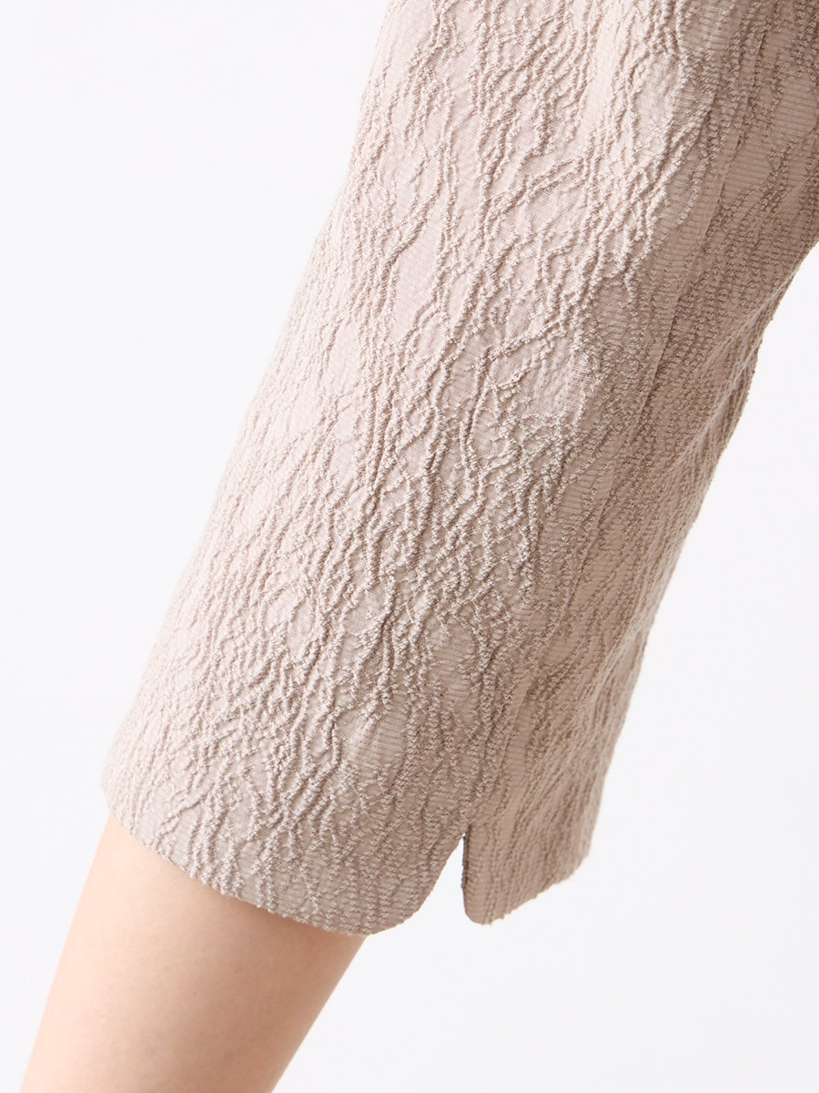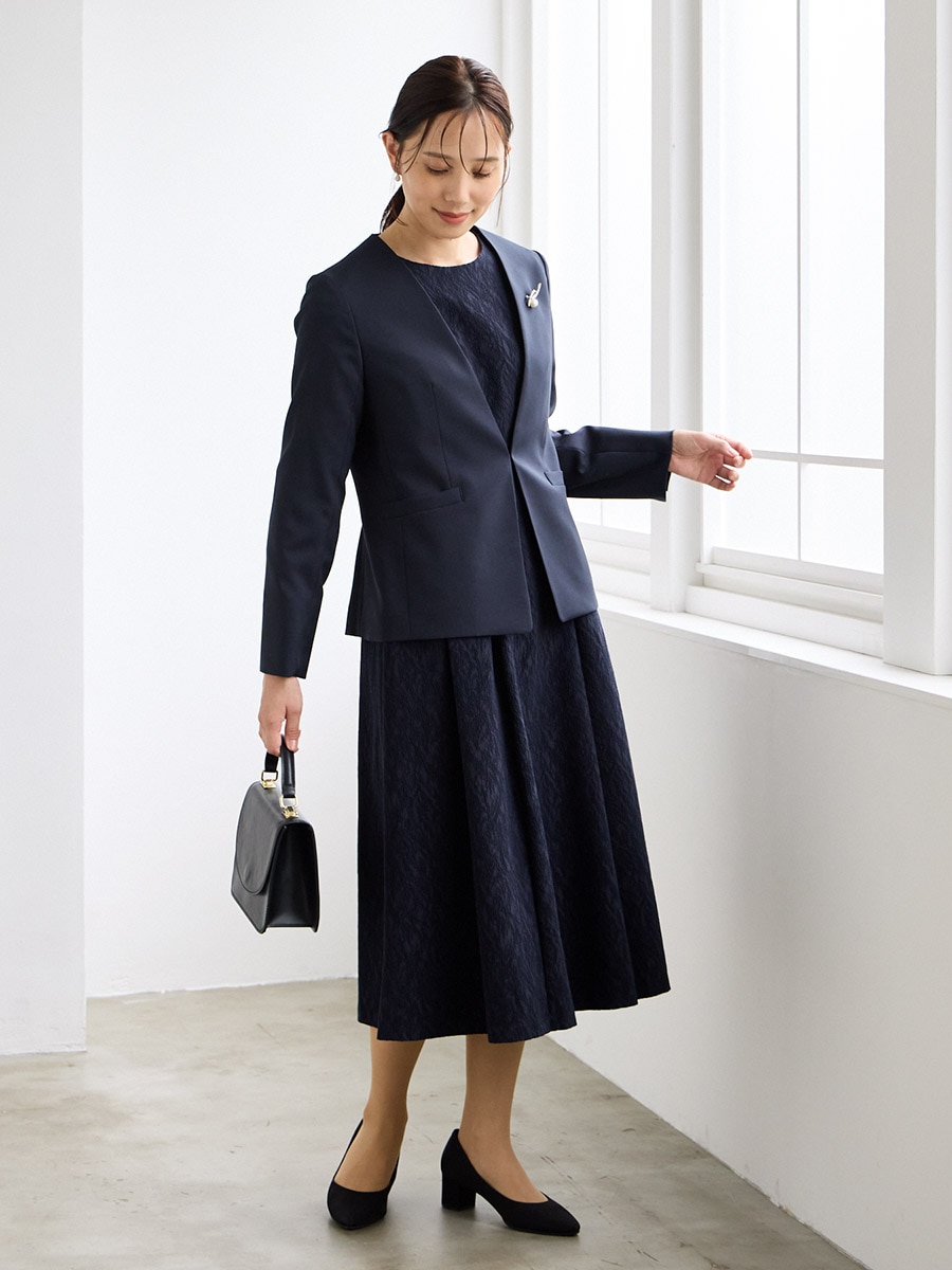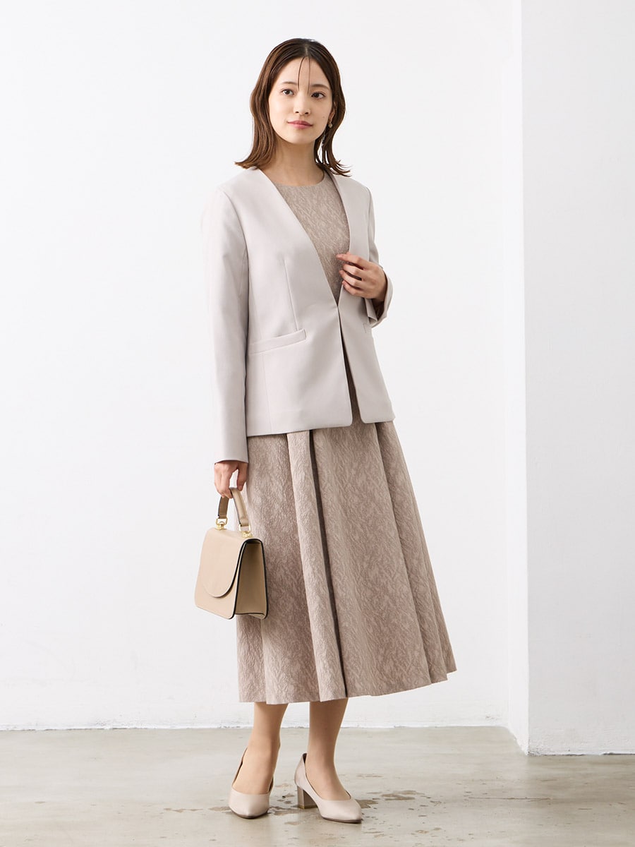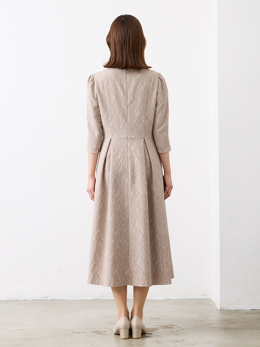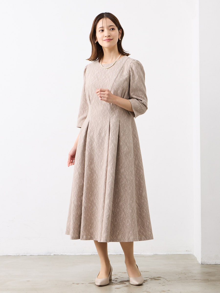 フェミニンなニュアンスを添えたジャカード素材のフィット&フレアワンピース